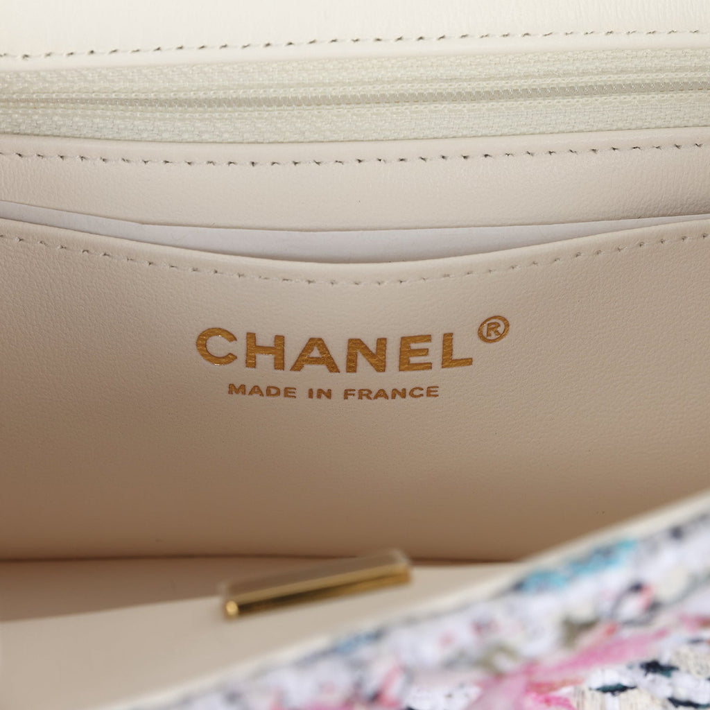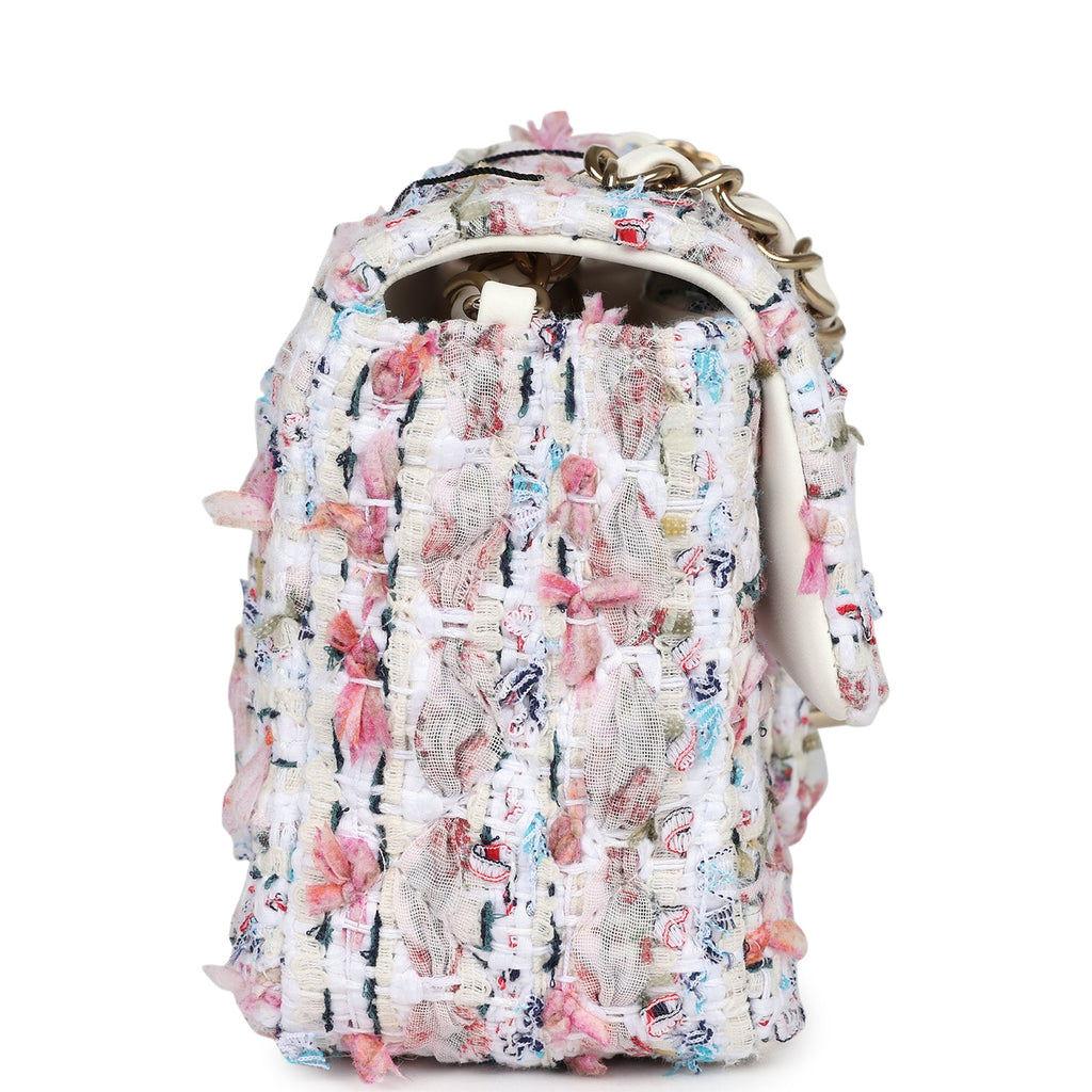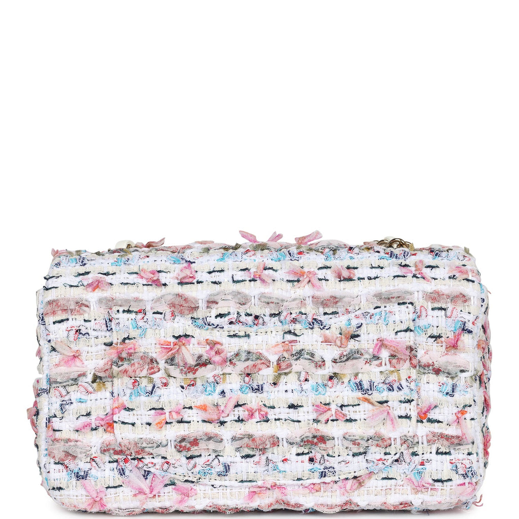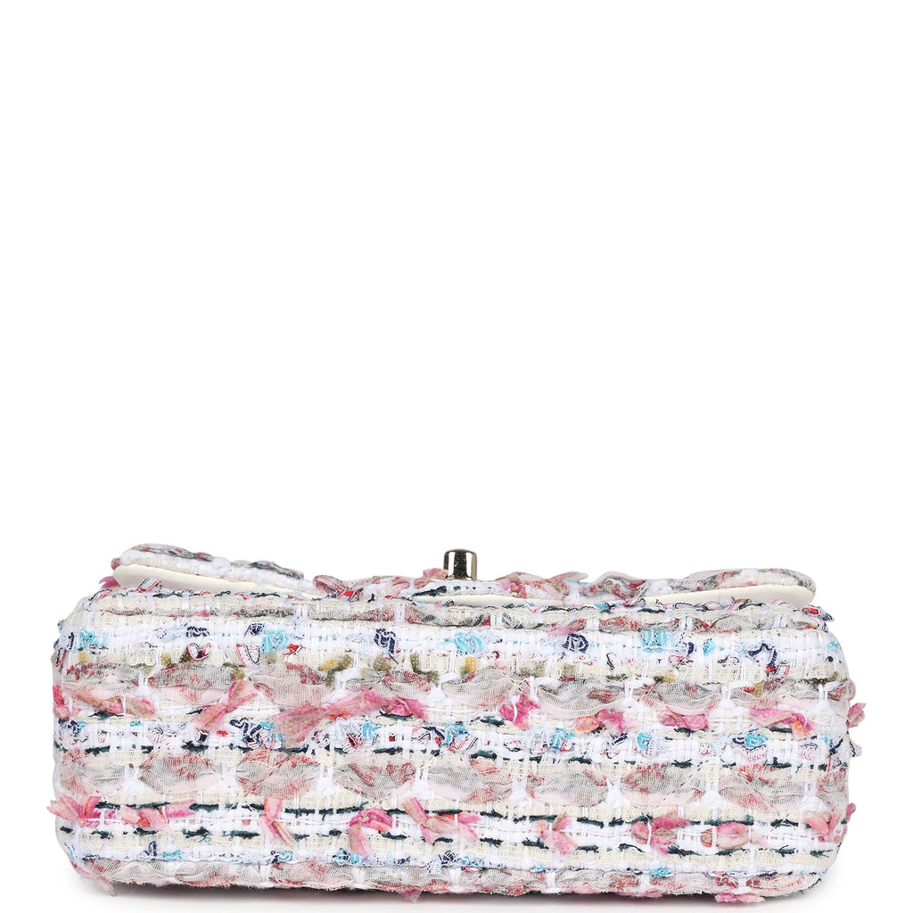 Chanel Mini Rectangular Flap Bag White Multicolored Tweed Light Gold Hardware