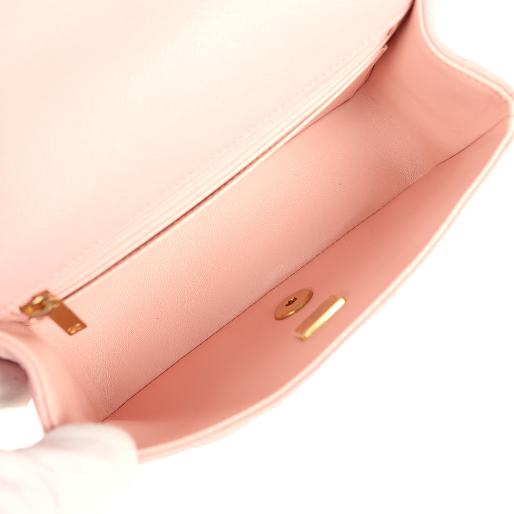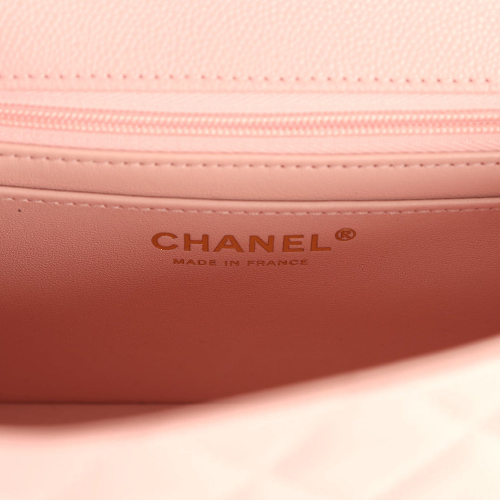 Chanel Mini Rectangular Flap Bag with CC Top Handle Pink Shiny Caviar Antique Gold Hardware