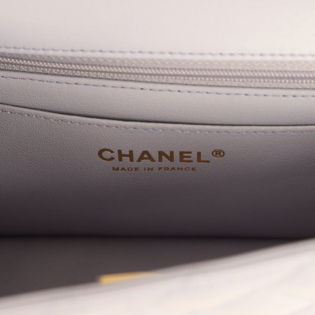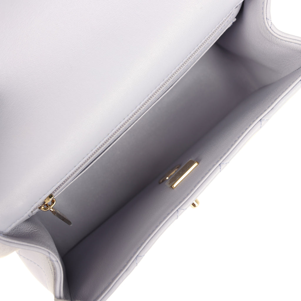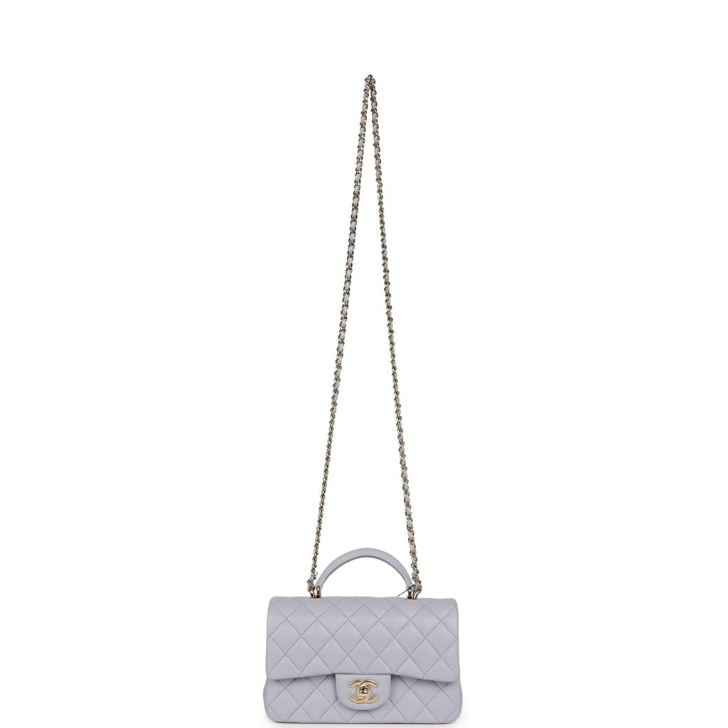 Chanel Mini Rectangular Flap Bag with Top Handle Light Purple Lambskin Light Gold Hardware