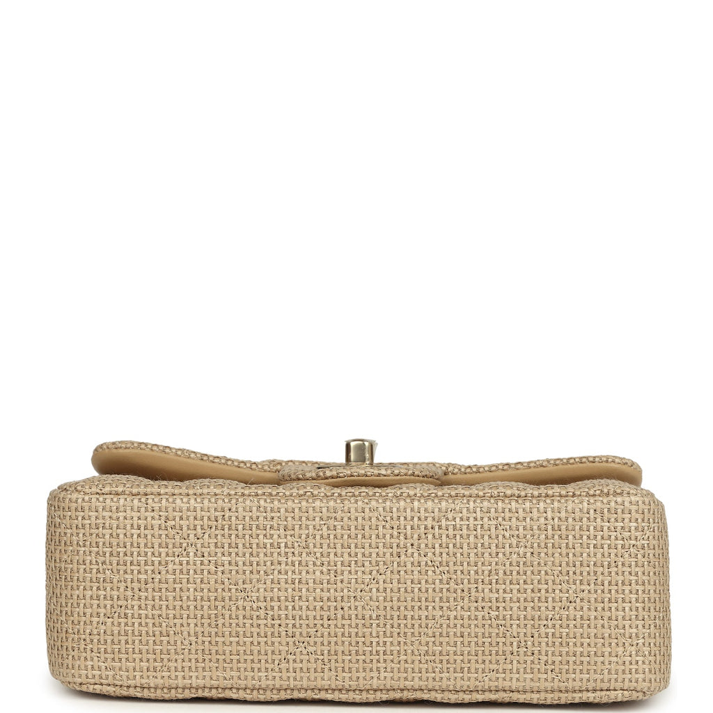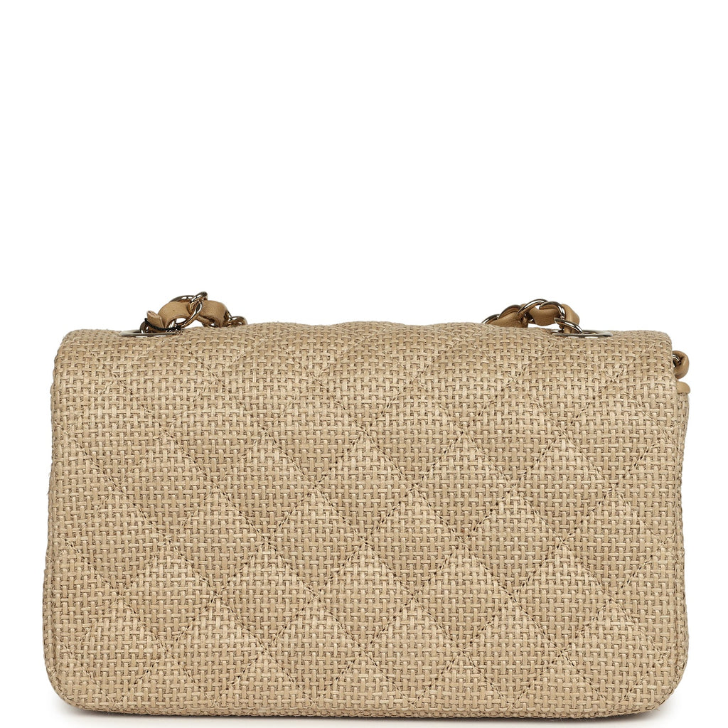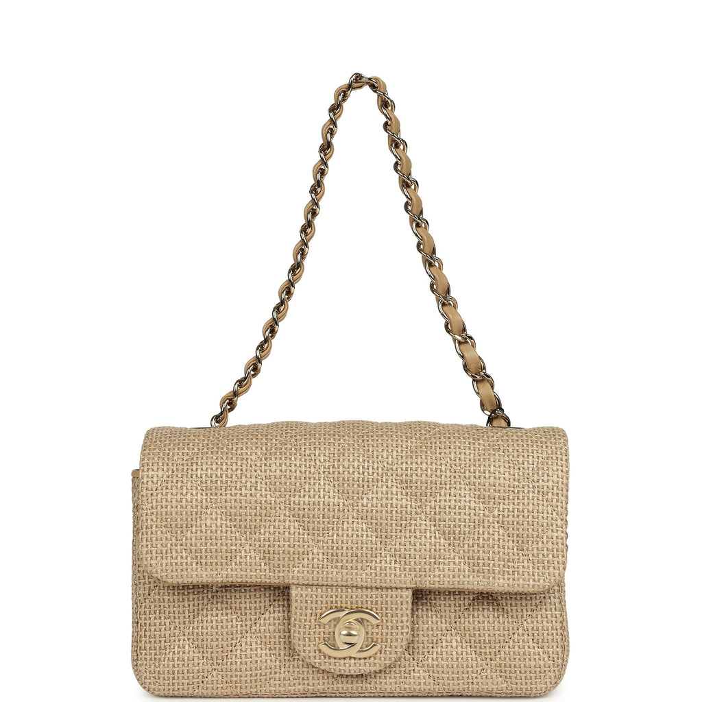 Chanel Mini Rectangular Flap Dark Beige Raffia Light Gold Hardware