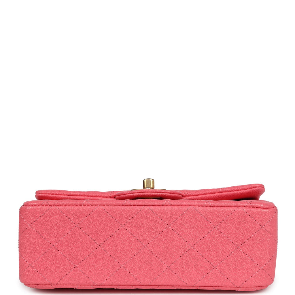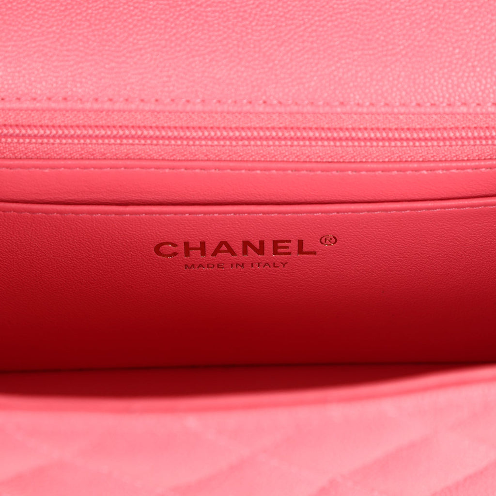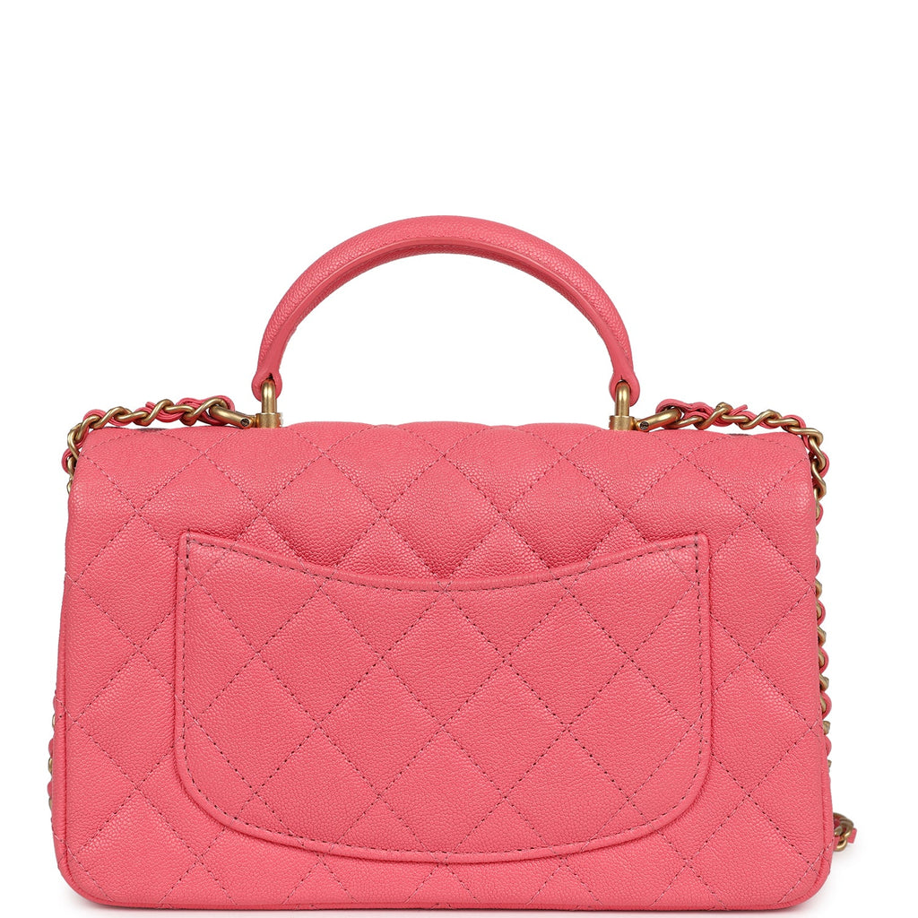 Pre-owned Chanel Mini Rectangular Flap with Top Handle Hot Pink Caviar Antique Gold Hardware
