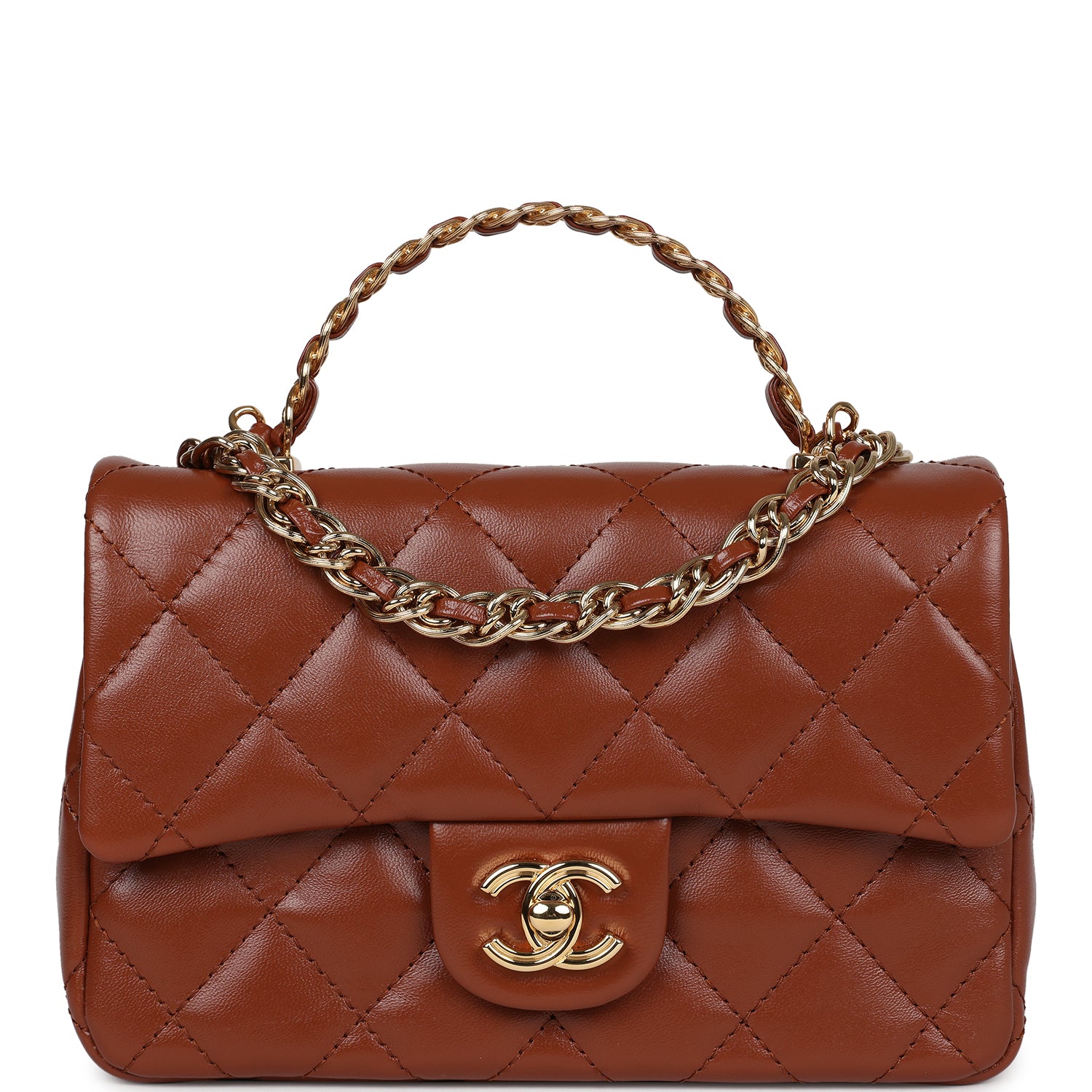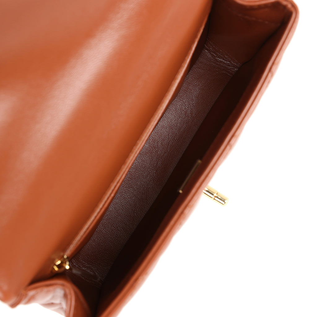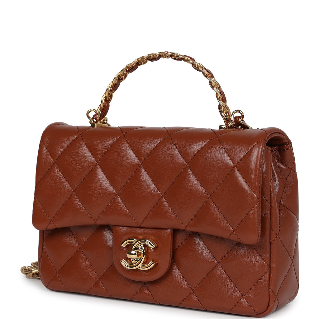 Chanel Mini Rectangular Top Handle Flap Bag Brown Shiny Calfskin Gold Hardware