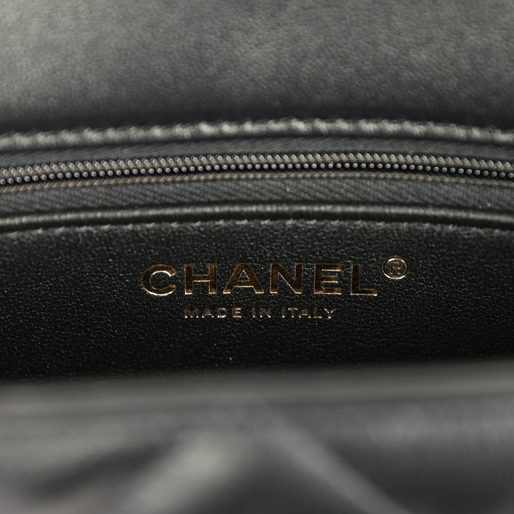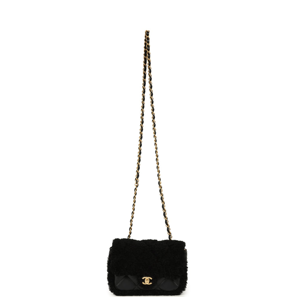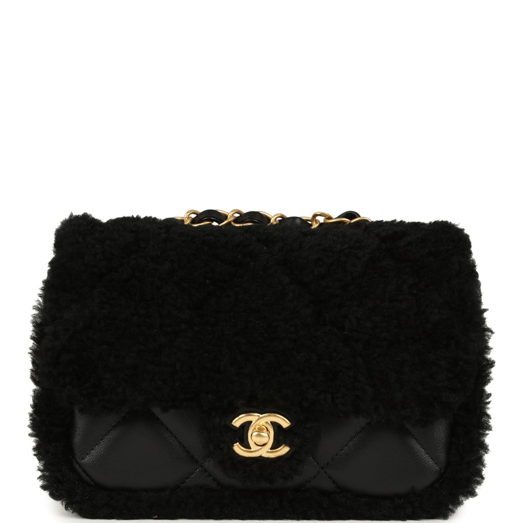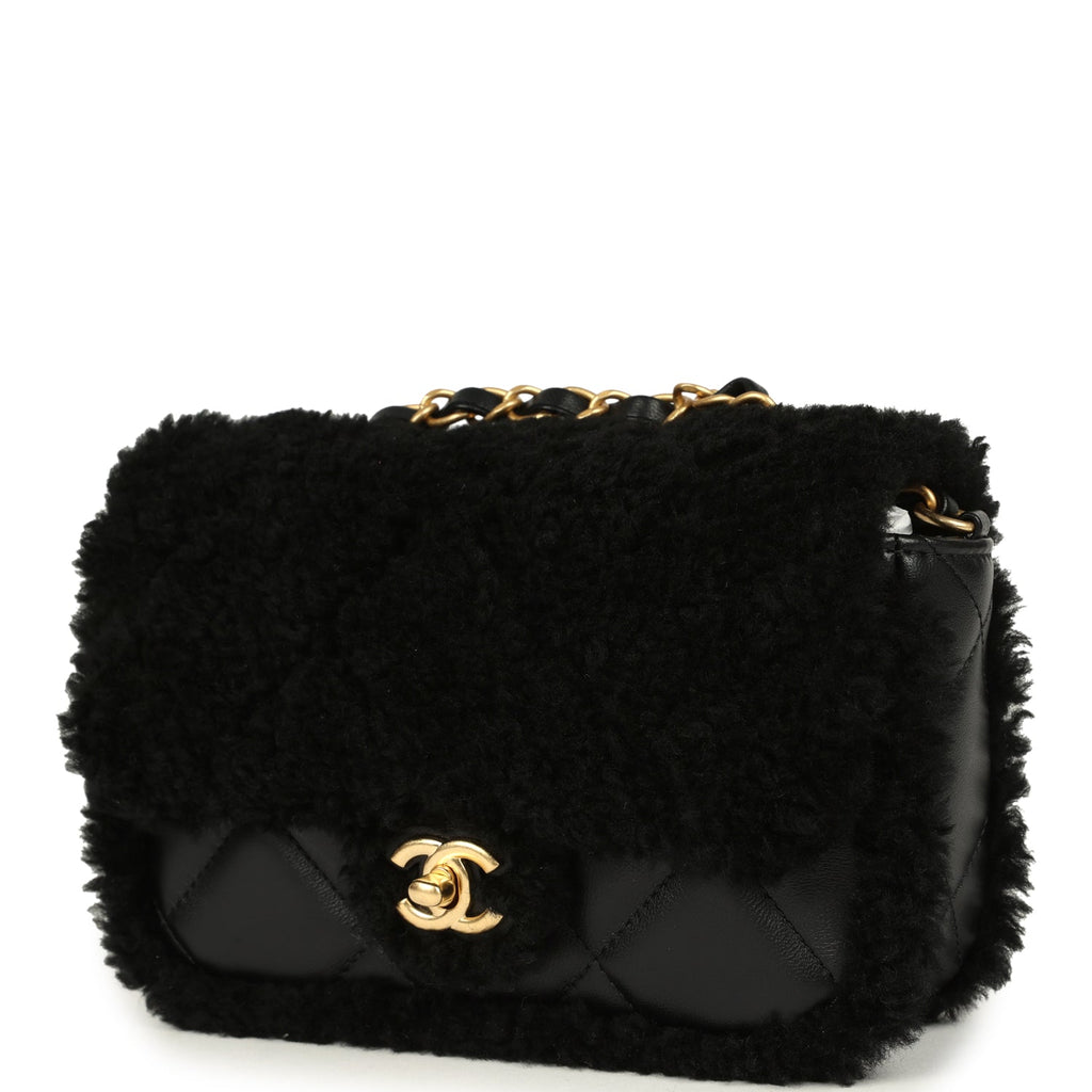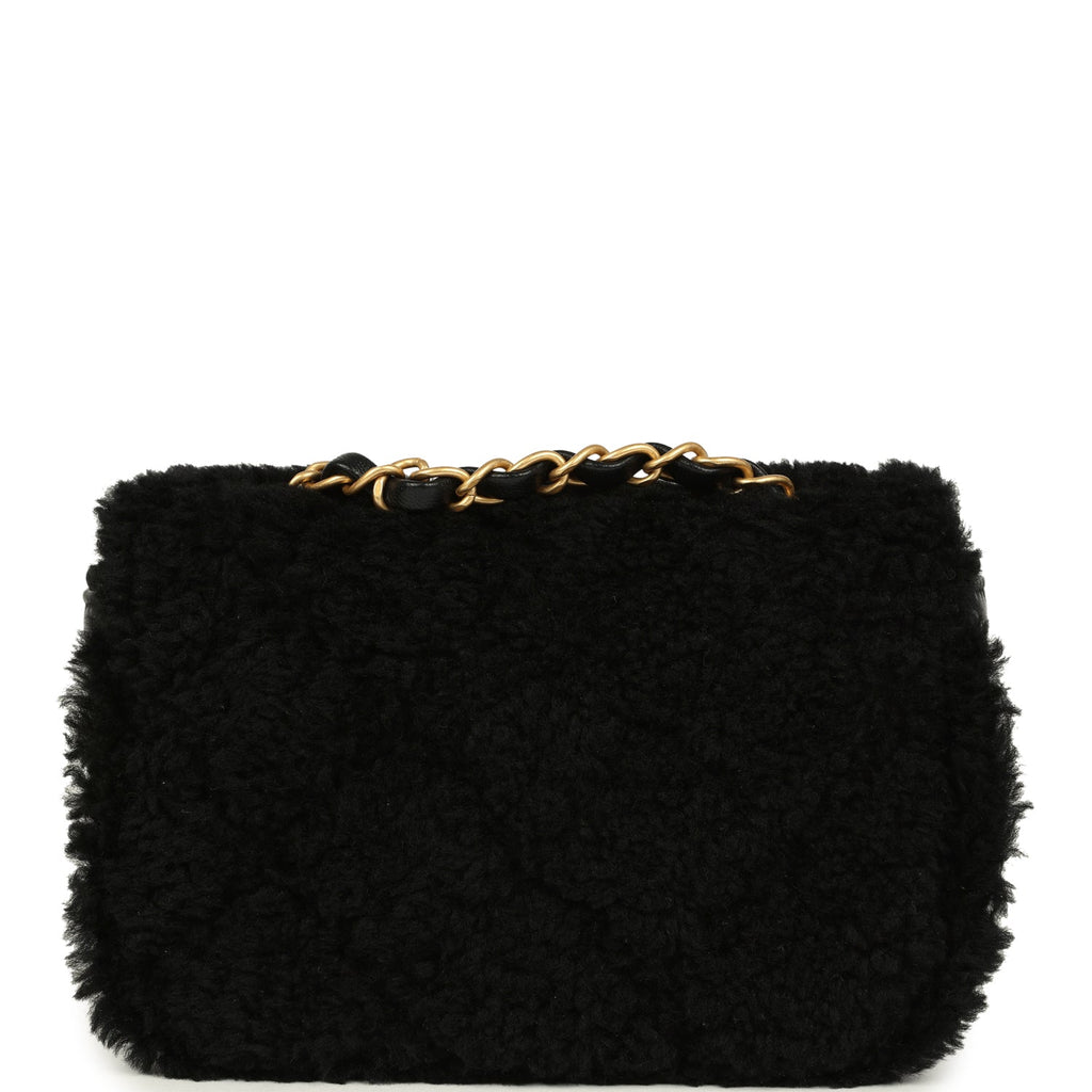 Chanel Mini Shearling Flap Bag Black Lambskin Brushed Gold Hardware