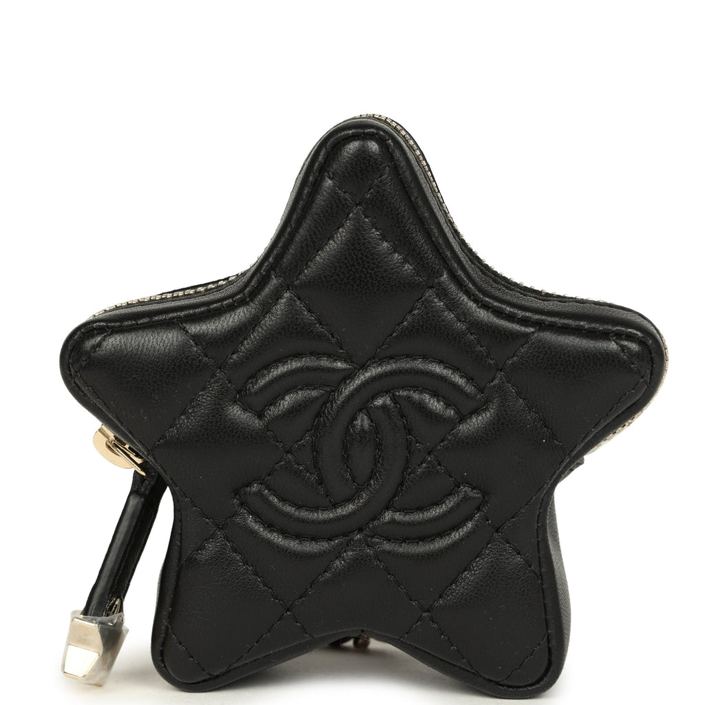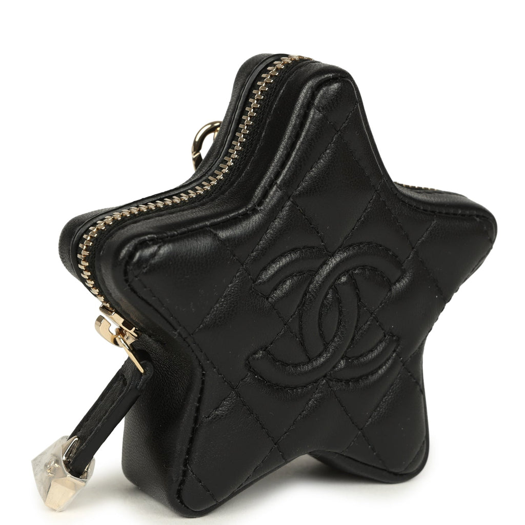 Chanel Mini Star Bag Charm Black Shiny Lambskin Light Gold Hardware