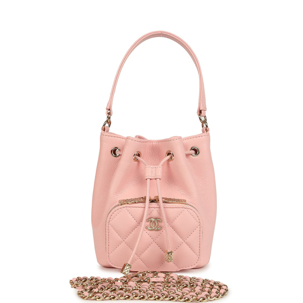 Chanel Mini Top Handle Bucket Bag with Chain Pink Shiny Caviar Light Gold Hardware