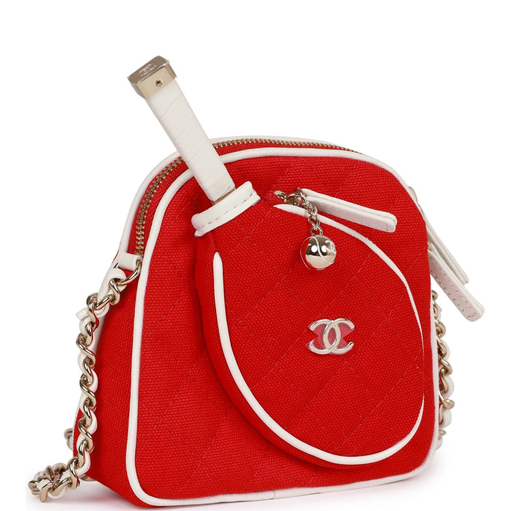 Chanel "Monte-Carlo" Mini Crossbody Tennis Bag Red Canvas Light Gold Hardware