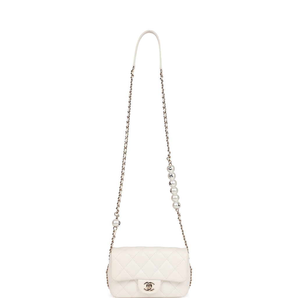 Chanel "My Precious" Flap Bag Imitation Pearl White Lambskin Light Gold Hardware