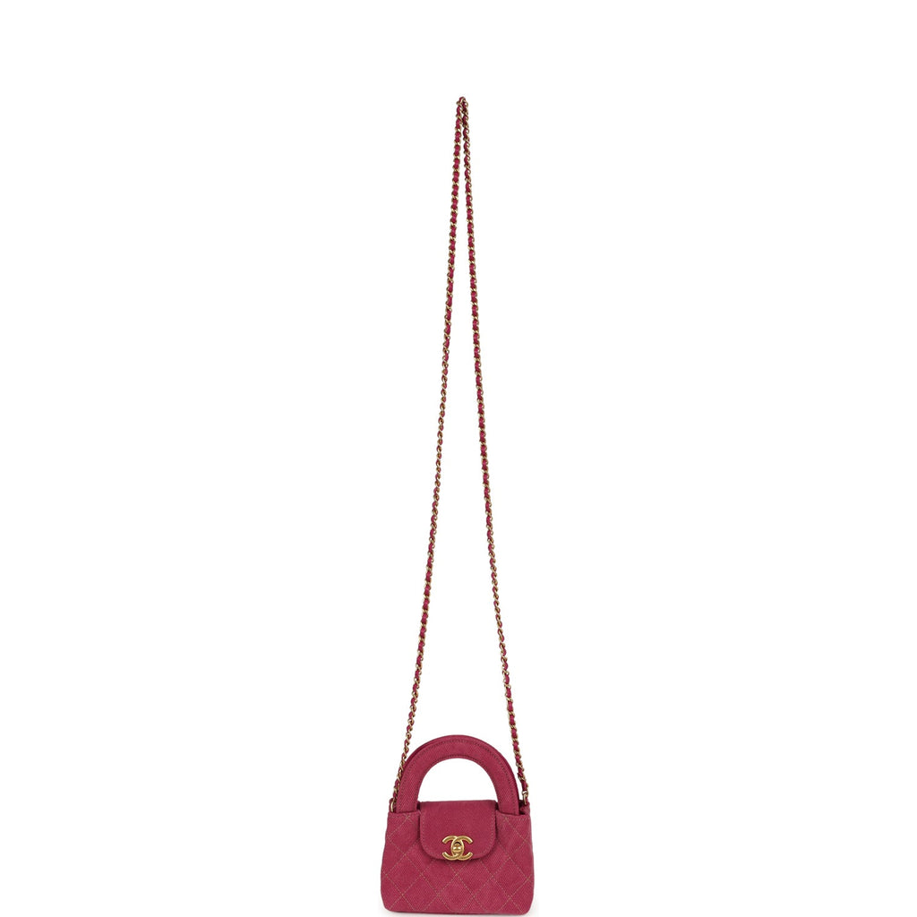 Chanel Nano Kelly Shopper Fuchsia Washed Denim Brushed Gold Hardware