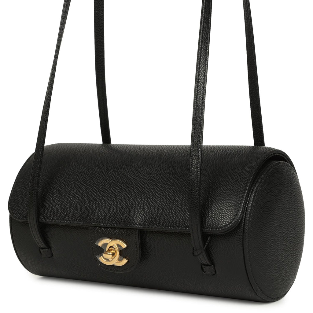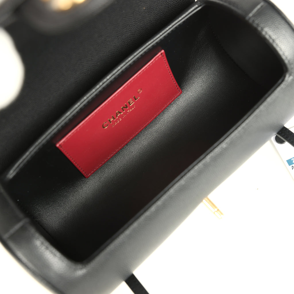 Chanel Preppy Coco Bowling Bag Black Shiny Caviar Brushed Gold Hardware