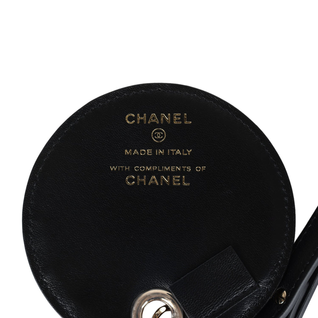 Chanel Round Luggage Tag Black Lambskin Light Gold Hardware