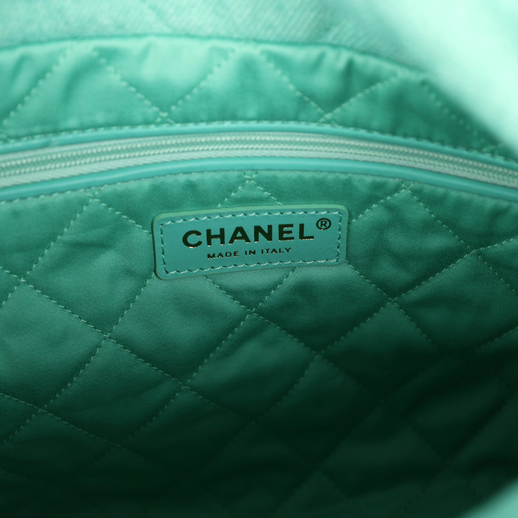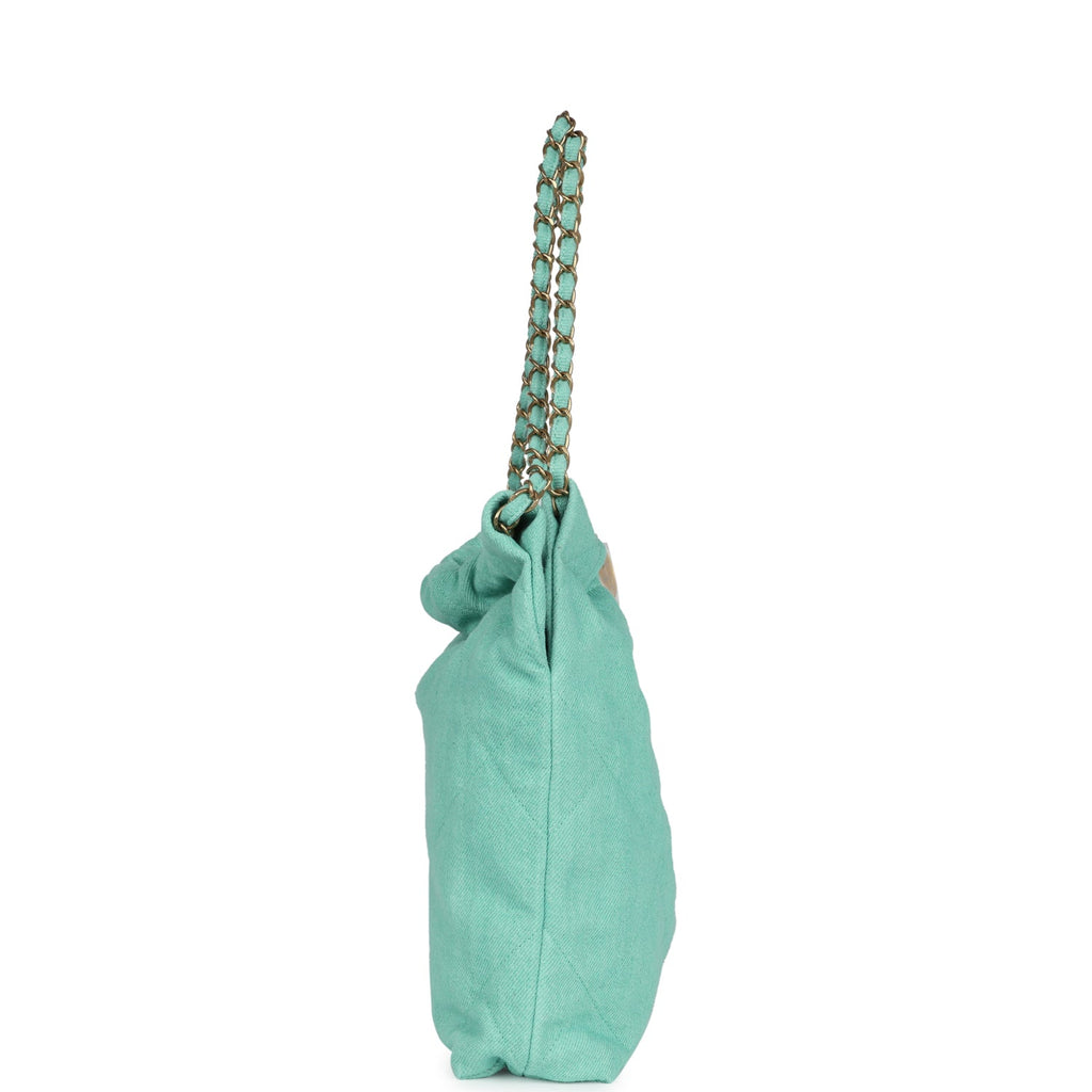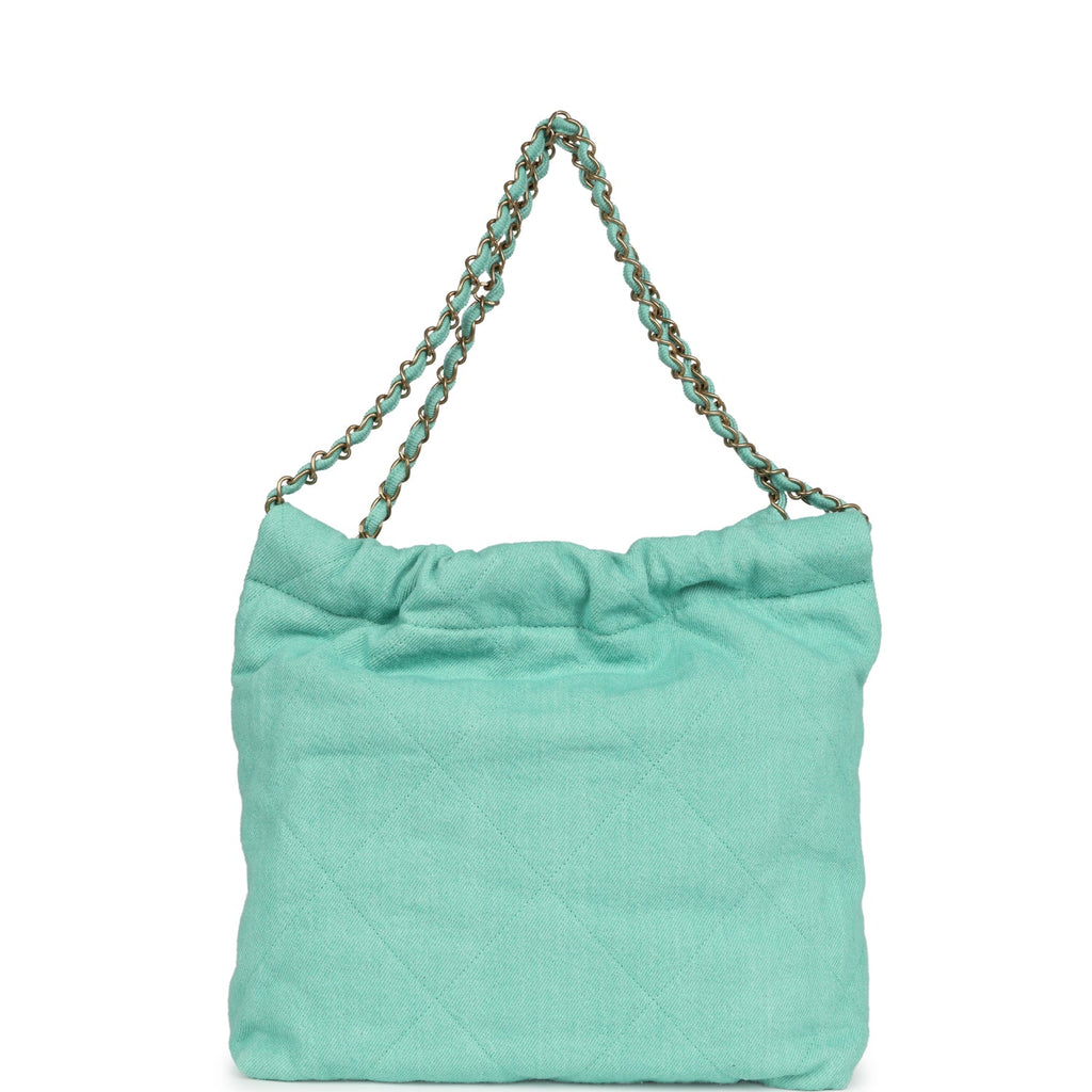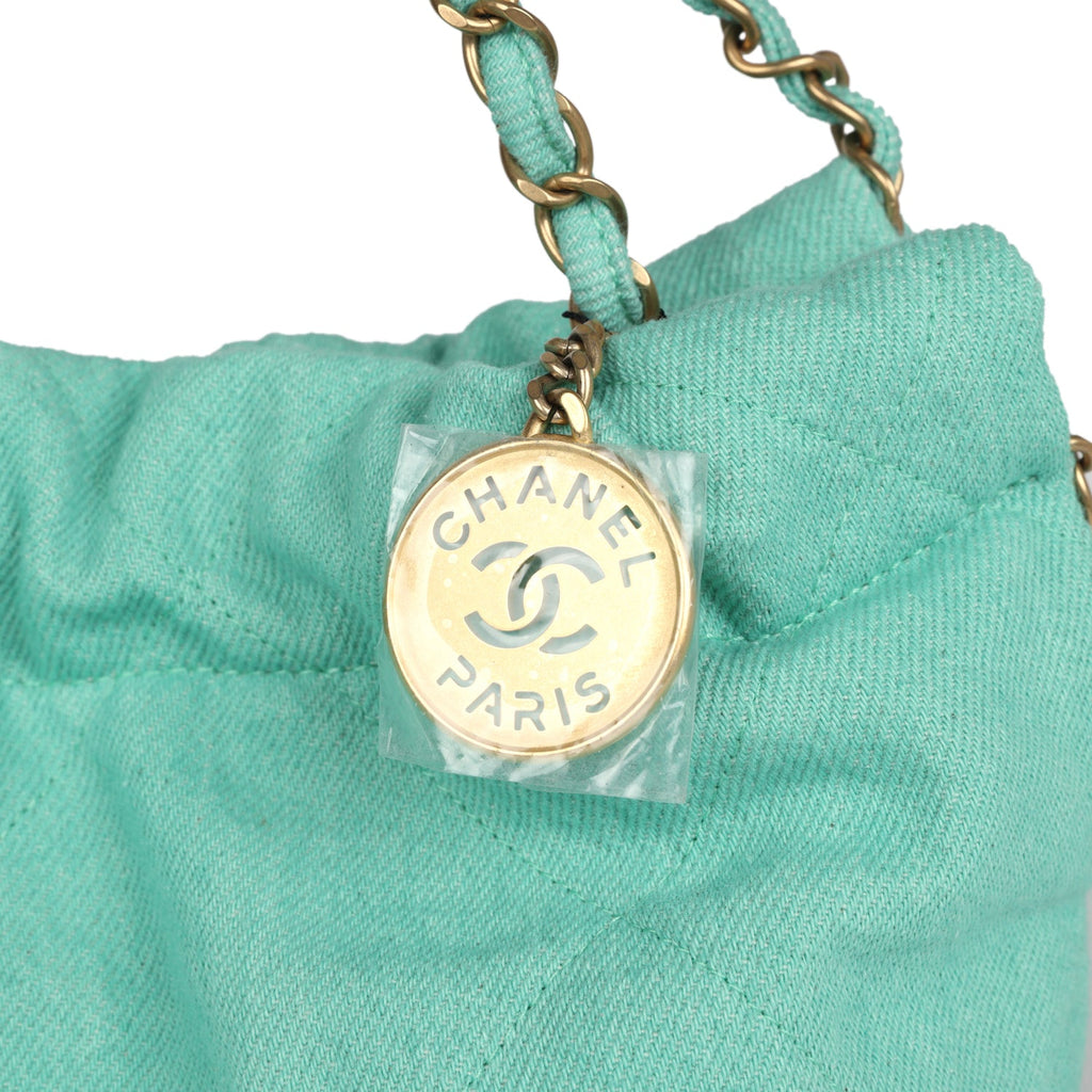 Chanel Small 22 Bag Light Green Washed Denim Gold Hardware