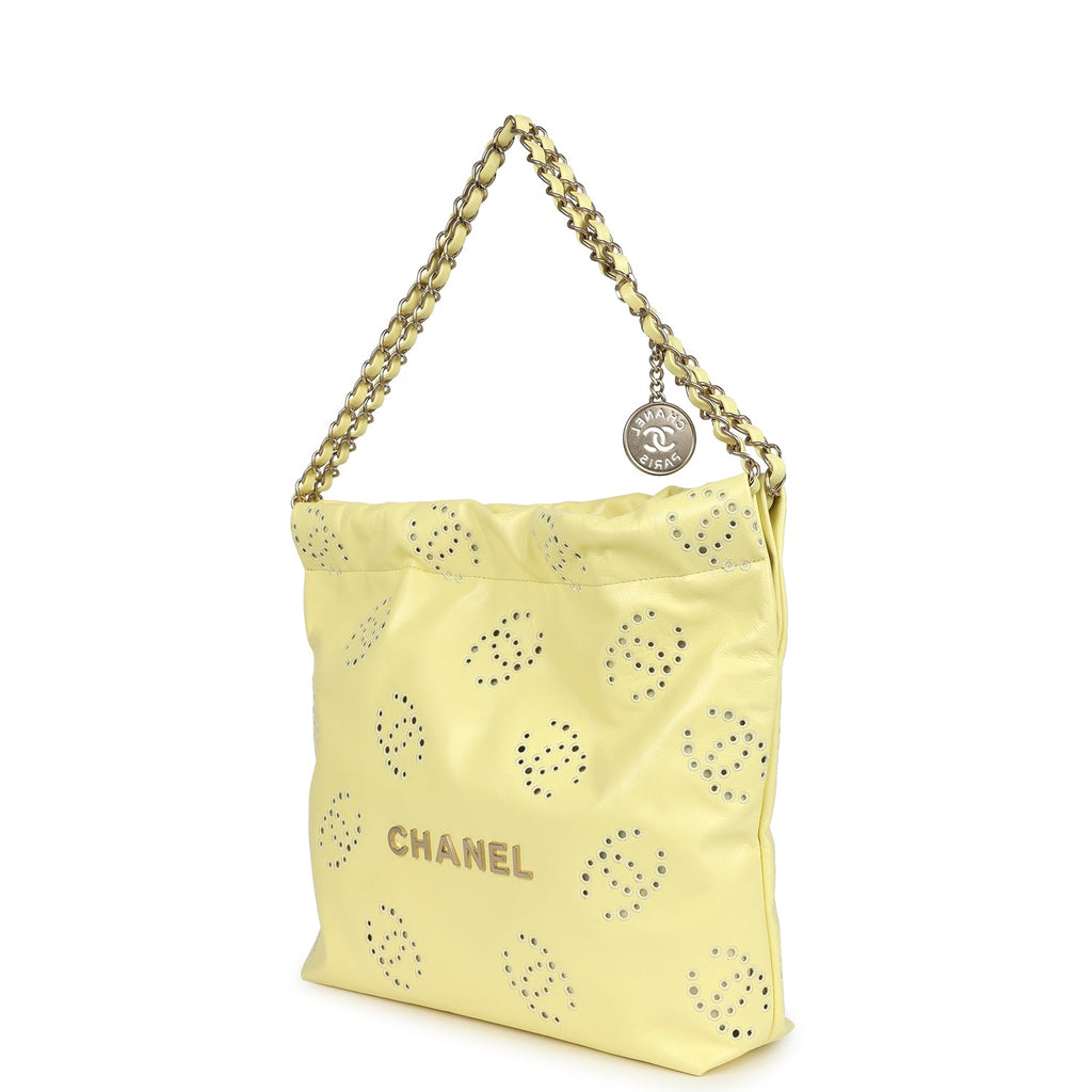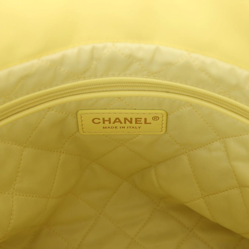 Chanel Small 22 Bag Yellow Shiny Calfskin Brushed Gold Hardware