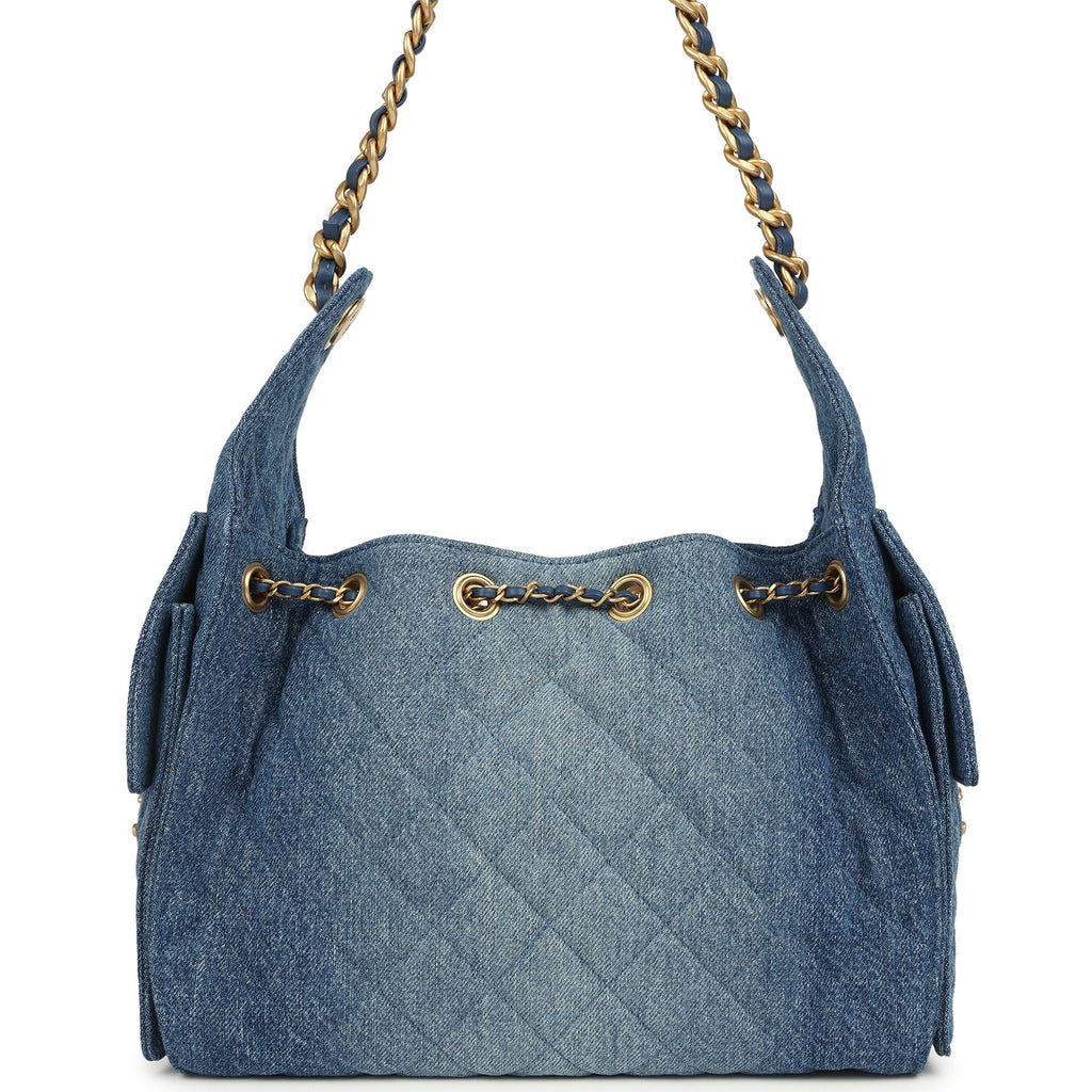 Chanel Small 25 Hobo Bag Blue Washed Denim Antique Gold Hardware