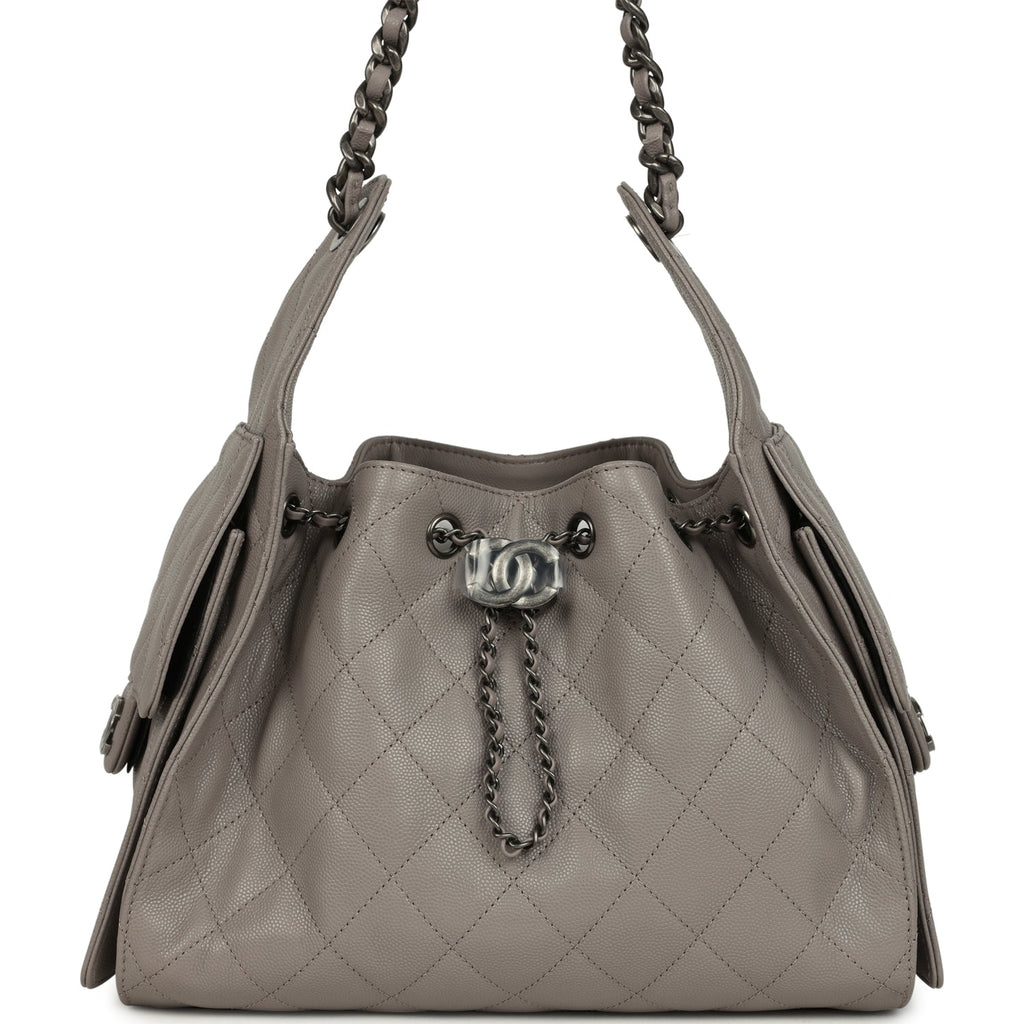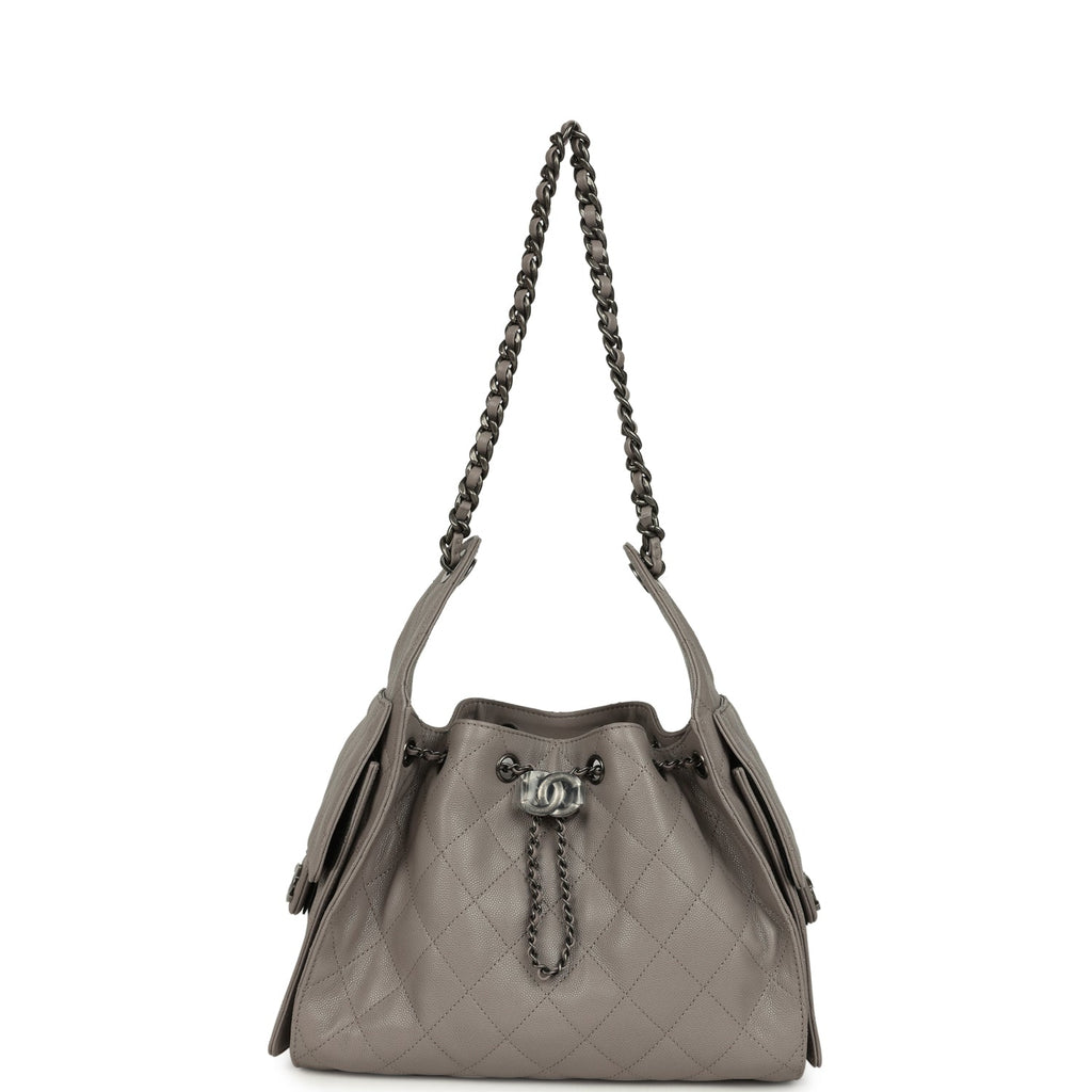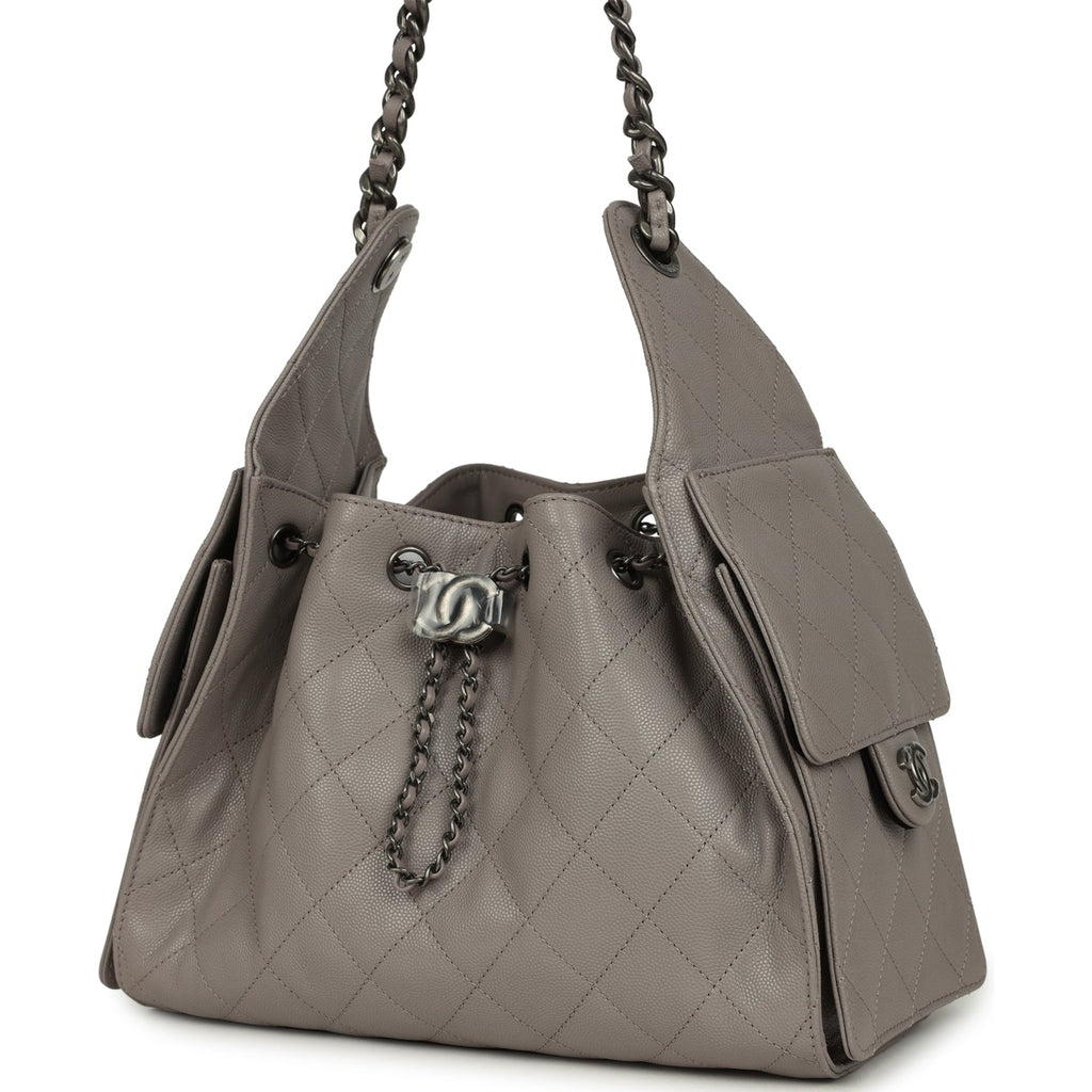 Chanel Small 25 Hobo Bag Dark Grey Caviar Antique Ruthenium Hardware