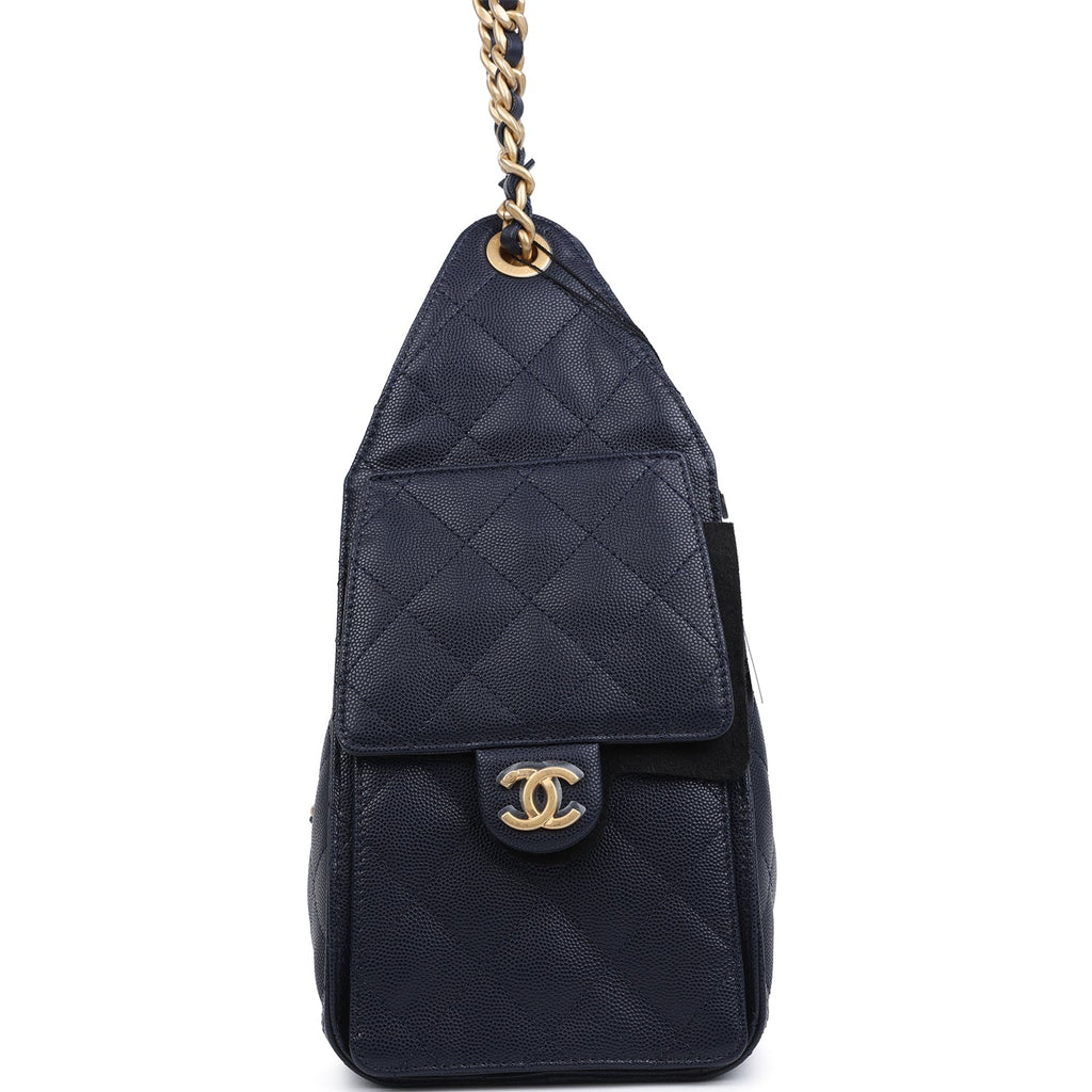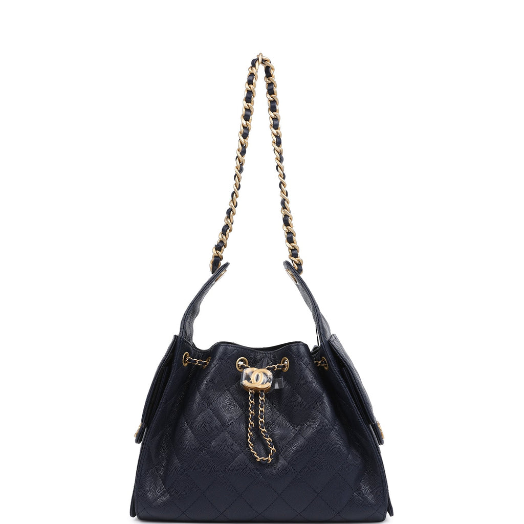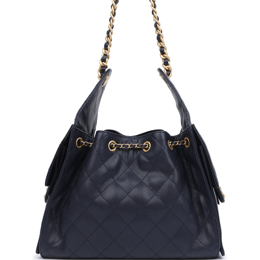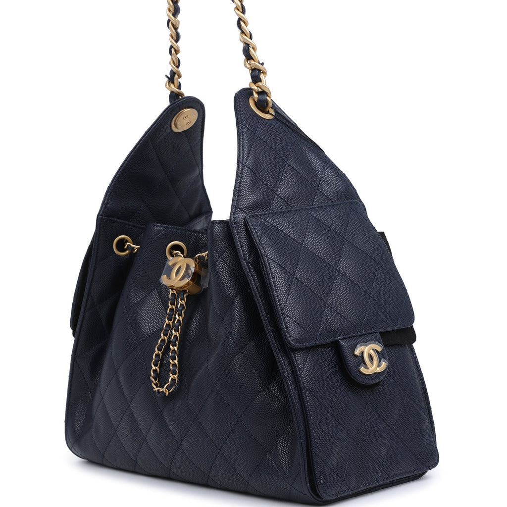 Chanel Small 25 Hobo Bag Dark Navy Caviar Antique Gold Hardware