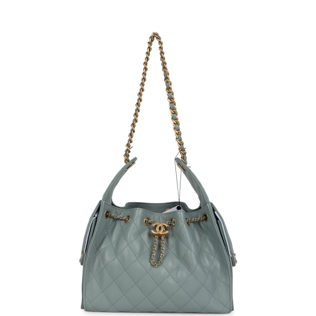 Chanel Small 25 Hobo Bag Green Caviar Antique Gold Hardware