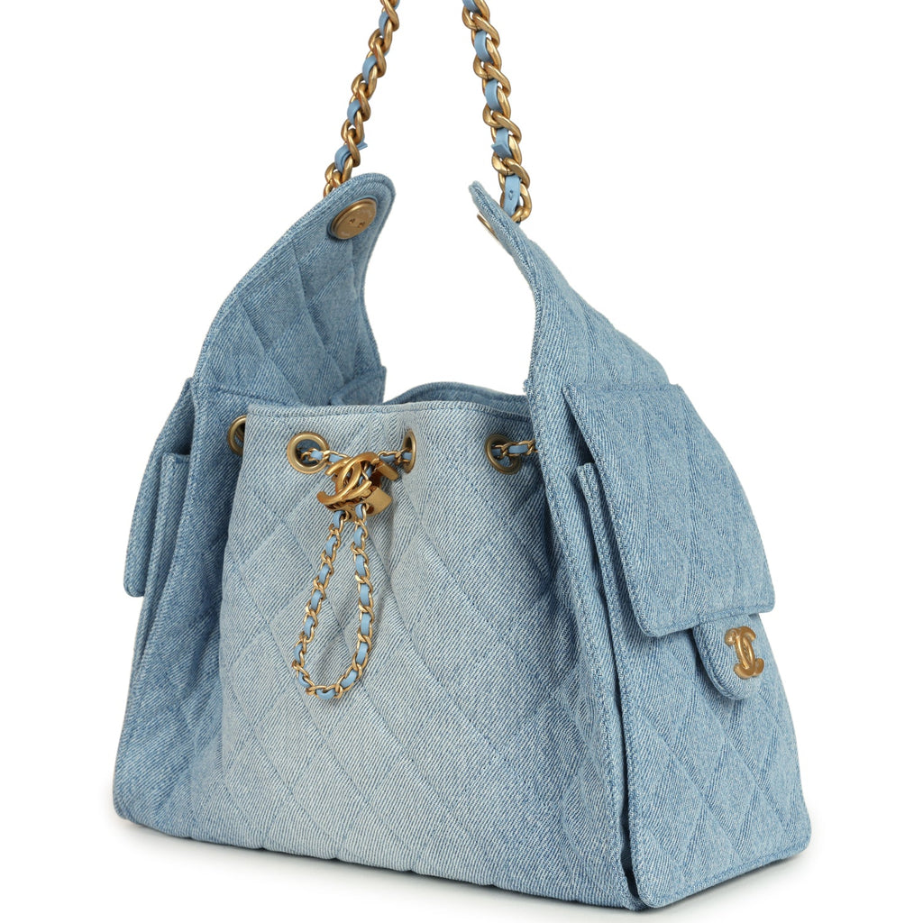 Chanel Small 25 Hobo Bag Light Blue Washed Denim Antique Gold Hardware
