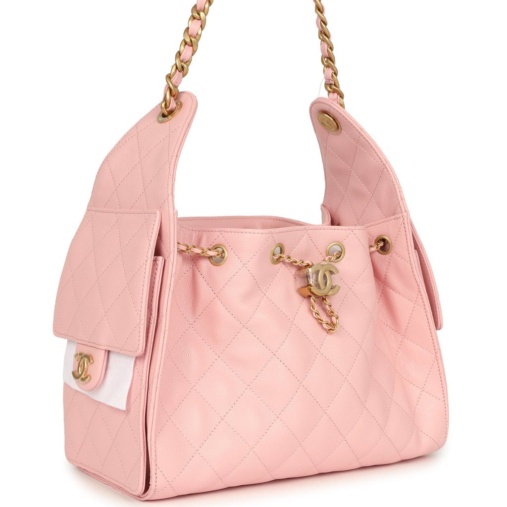 Chanel Small 25 Hobo Bag Light Pink Caviar Antique Gold Hardware