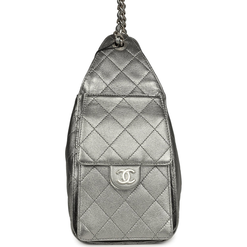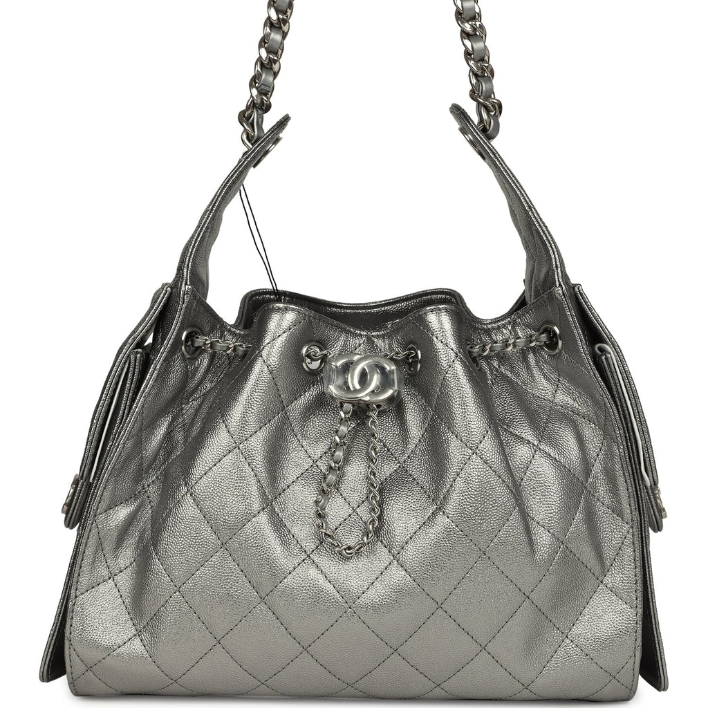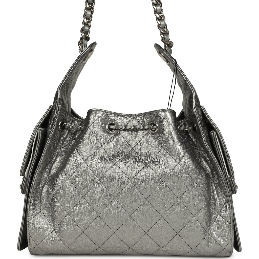 Chanel Small 25 Hobo Bag Metallic Anthracite Caviar Silver Hardware
