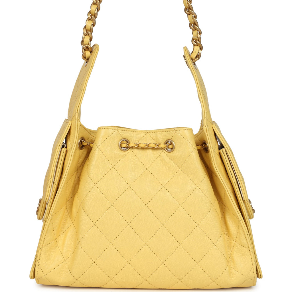 Chanel Small 25 Hobo Bag Yellow Caviar Antique Gold Hardware