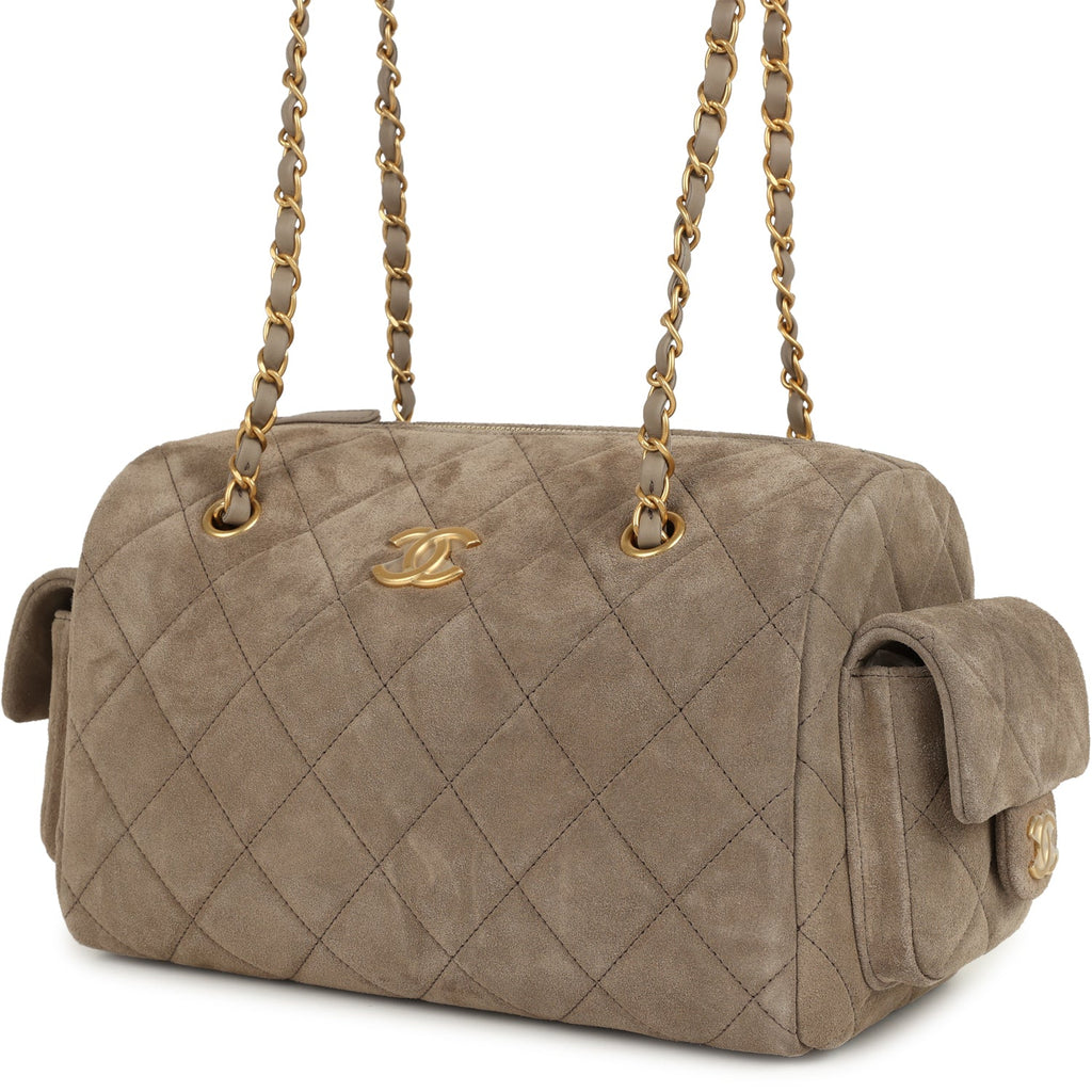 Chanel Small Bowling Bag Dark Grey Suede Antique Gold Hardware