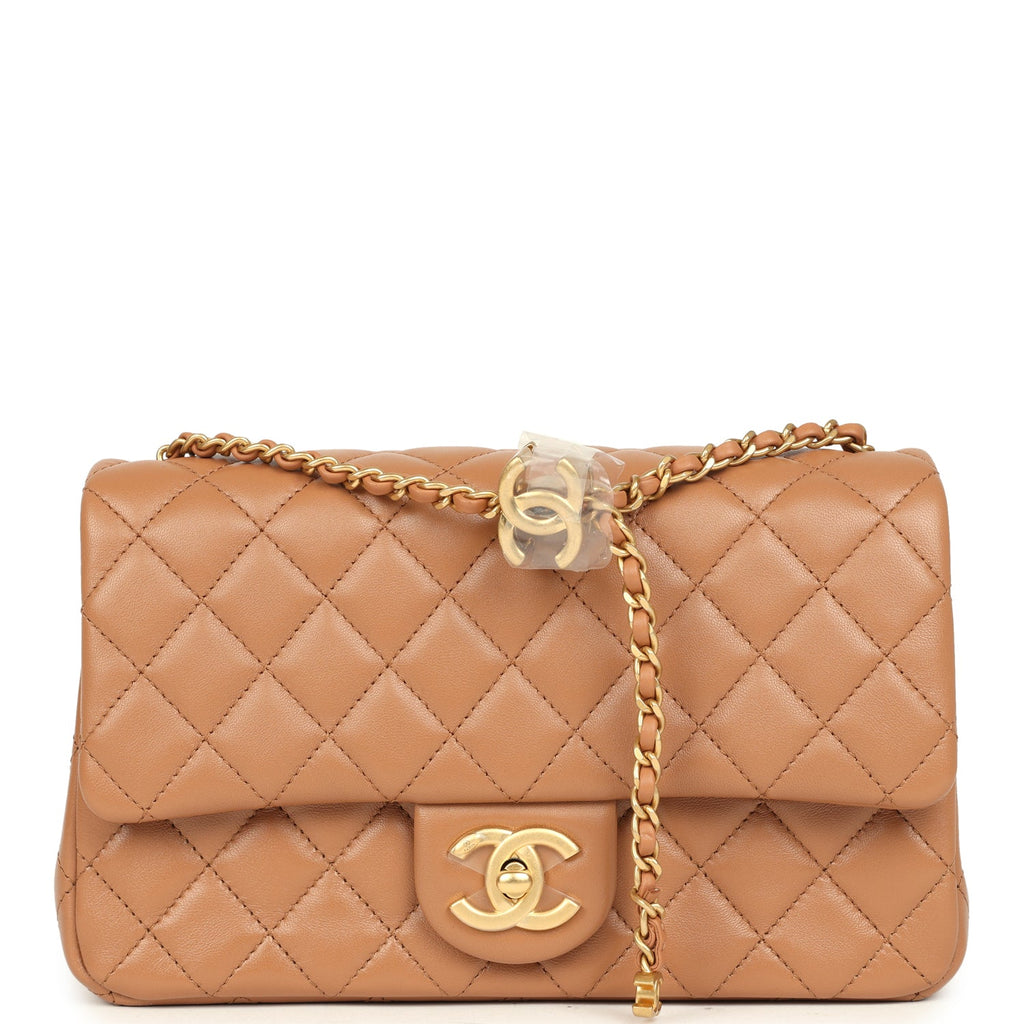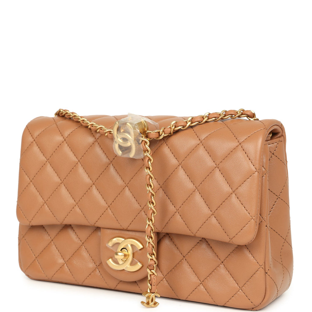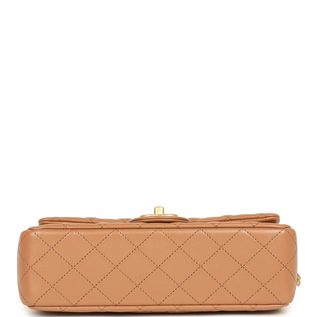 Chanel Small CC Crush Flap Bag Caramel Lambskin Brushed Gold Hardware