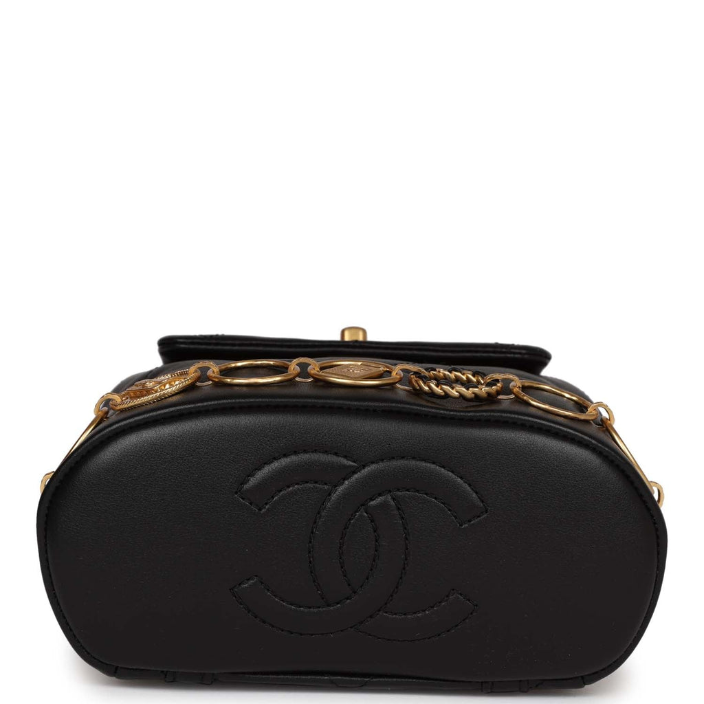 Chanel Small Charm Backpack Black Calfskin Aged Gold Hardware