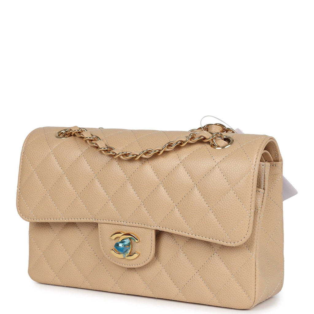 Chanel Small Classic Double Flap Bag Beige Caviar Gold Hardware