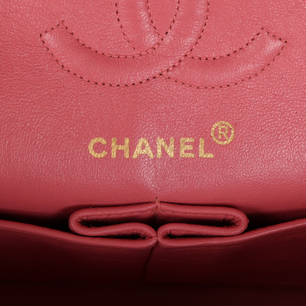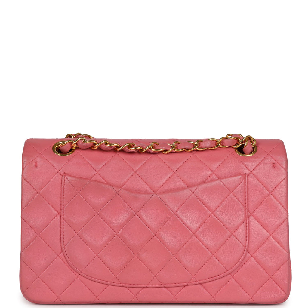 Vintage Chanel Small Classic Double Flap Bag Dark Pink Lambskin Gold Hardware