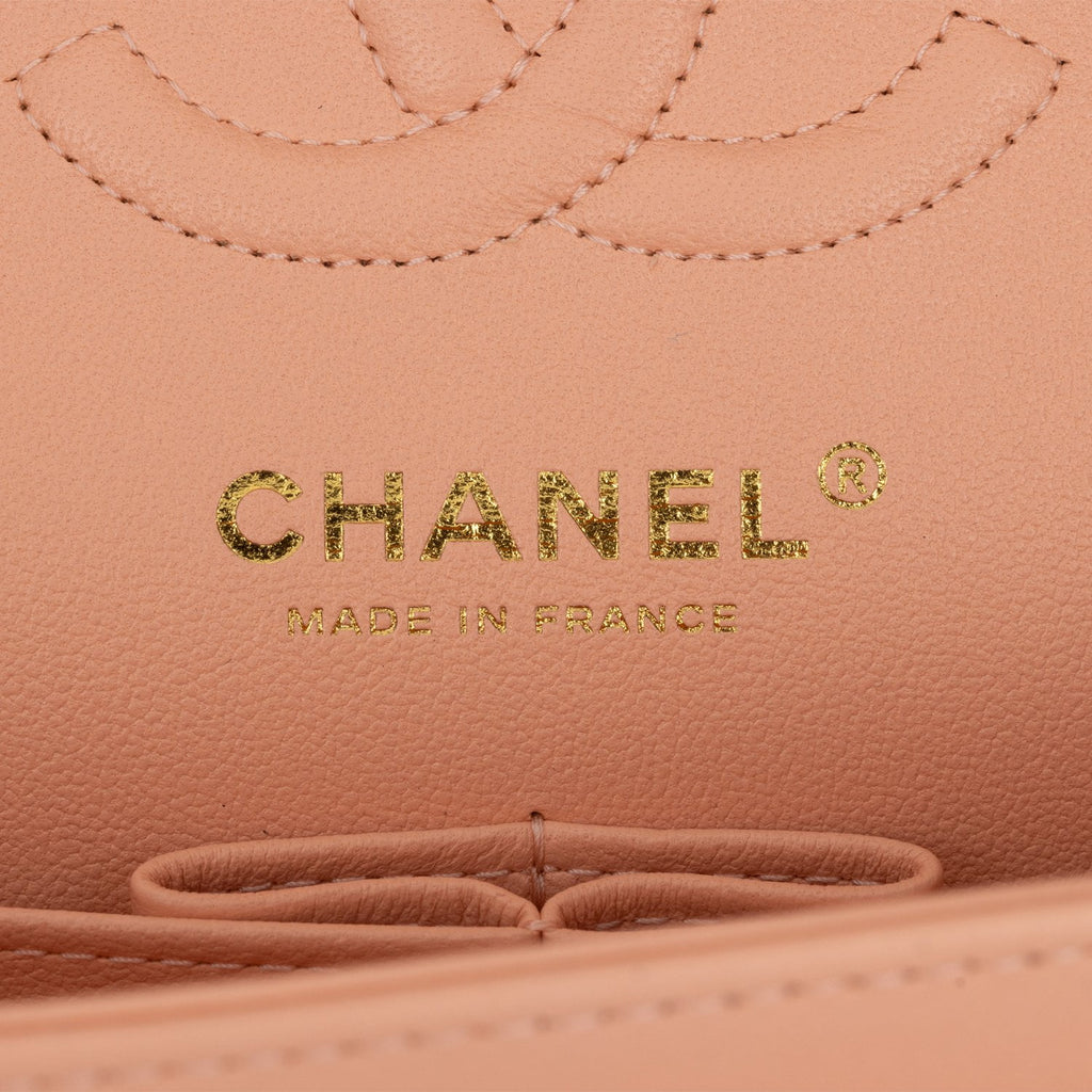 Chanel Small Classic Double Flap Peach Lambskin Light Gold Hardware