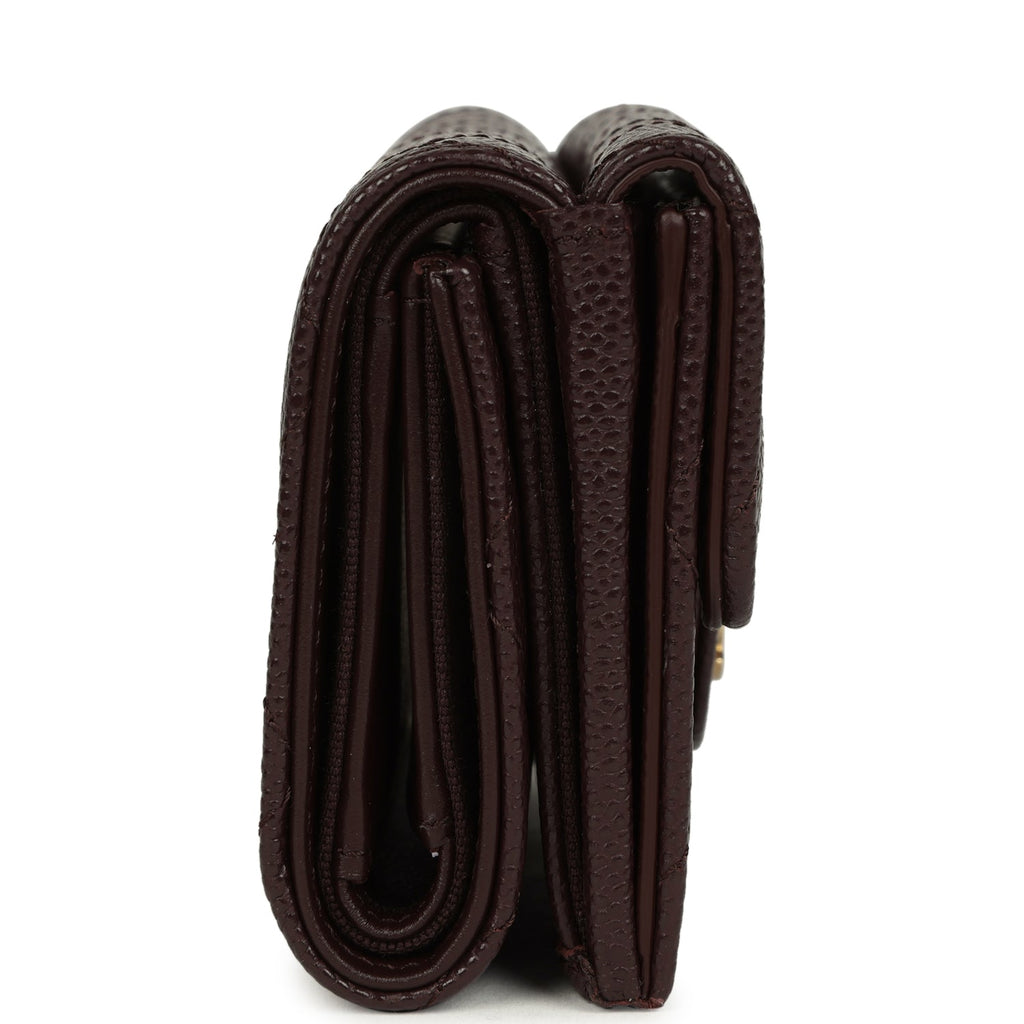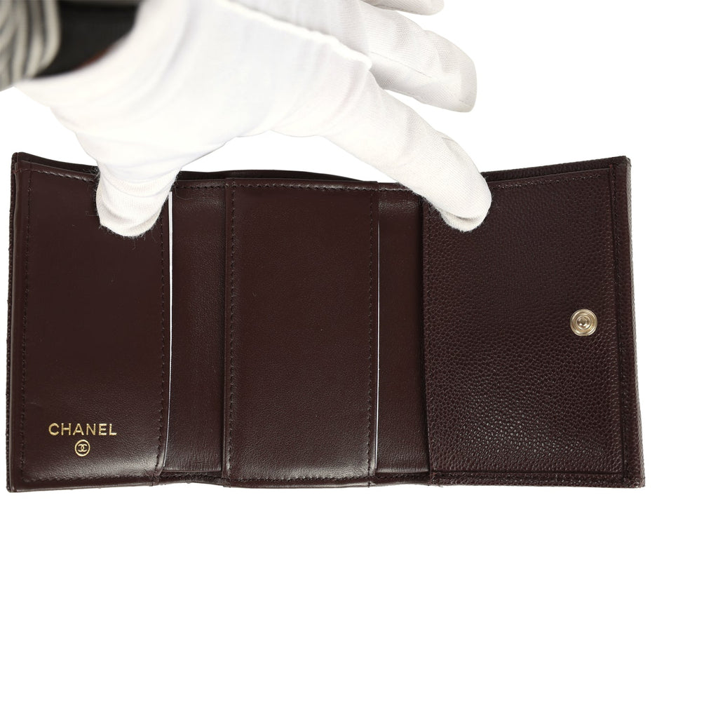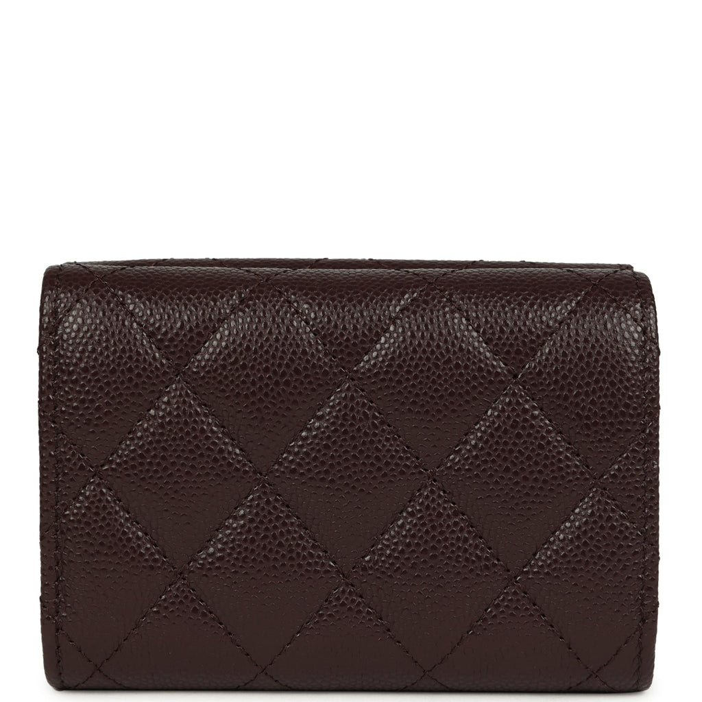 Chanel Small Classic Flap Wallet Dark Brown Shiny Caviar Light Gold Hardware