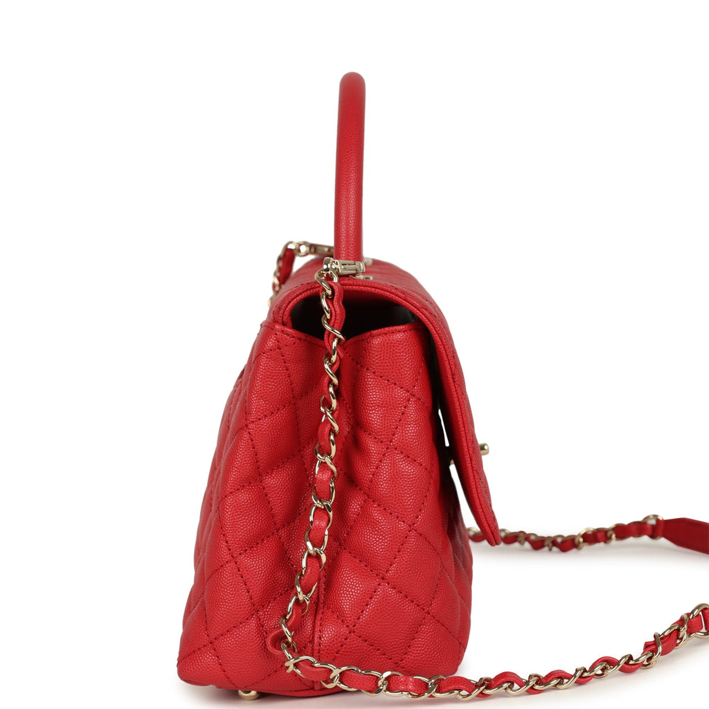 Chanel Small Coco Handle Flap Bag Red Caviar Light Gold Hardware
