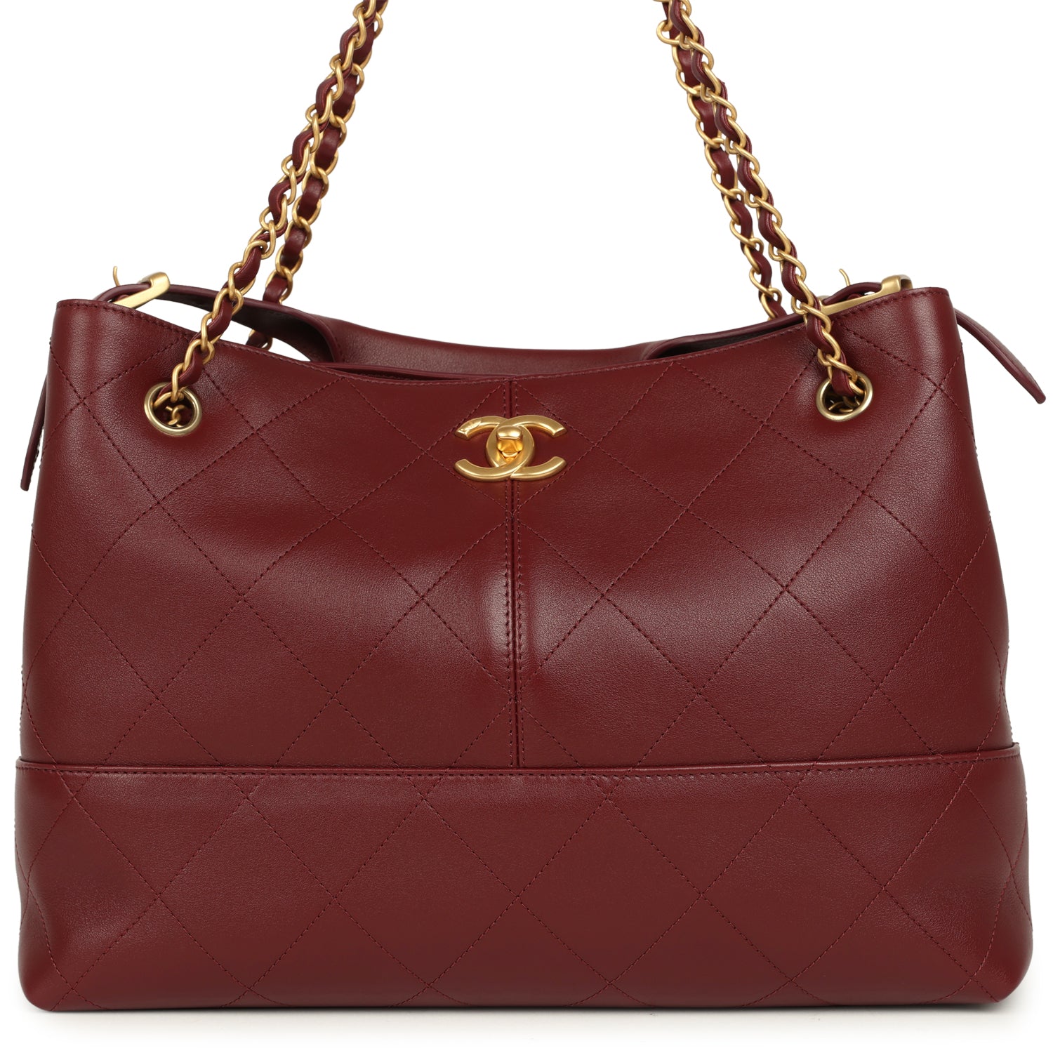 Chanel Small Coco Hobo Bag Burgundy Calfskin Antique Gold Hardware