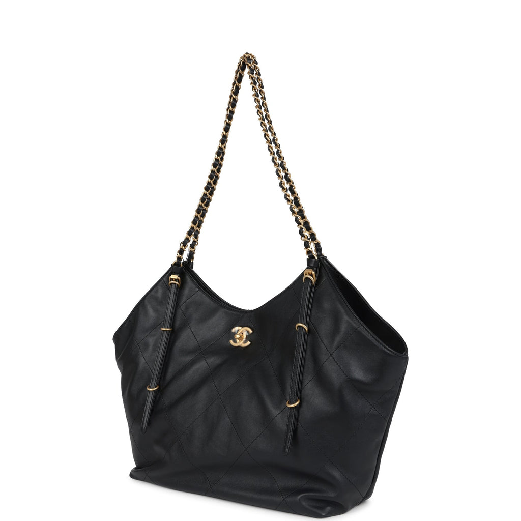 Chanel Small Coco Shopping Bag Black Calfskin Antique Gold Hardware