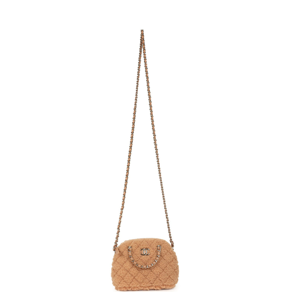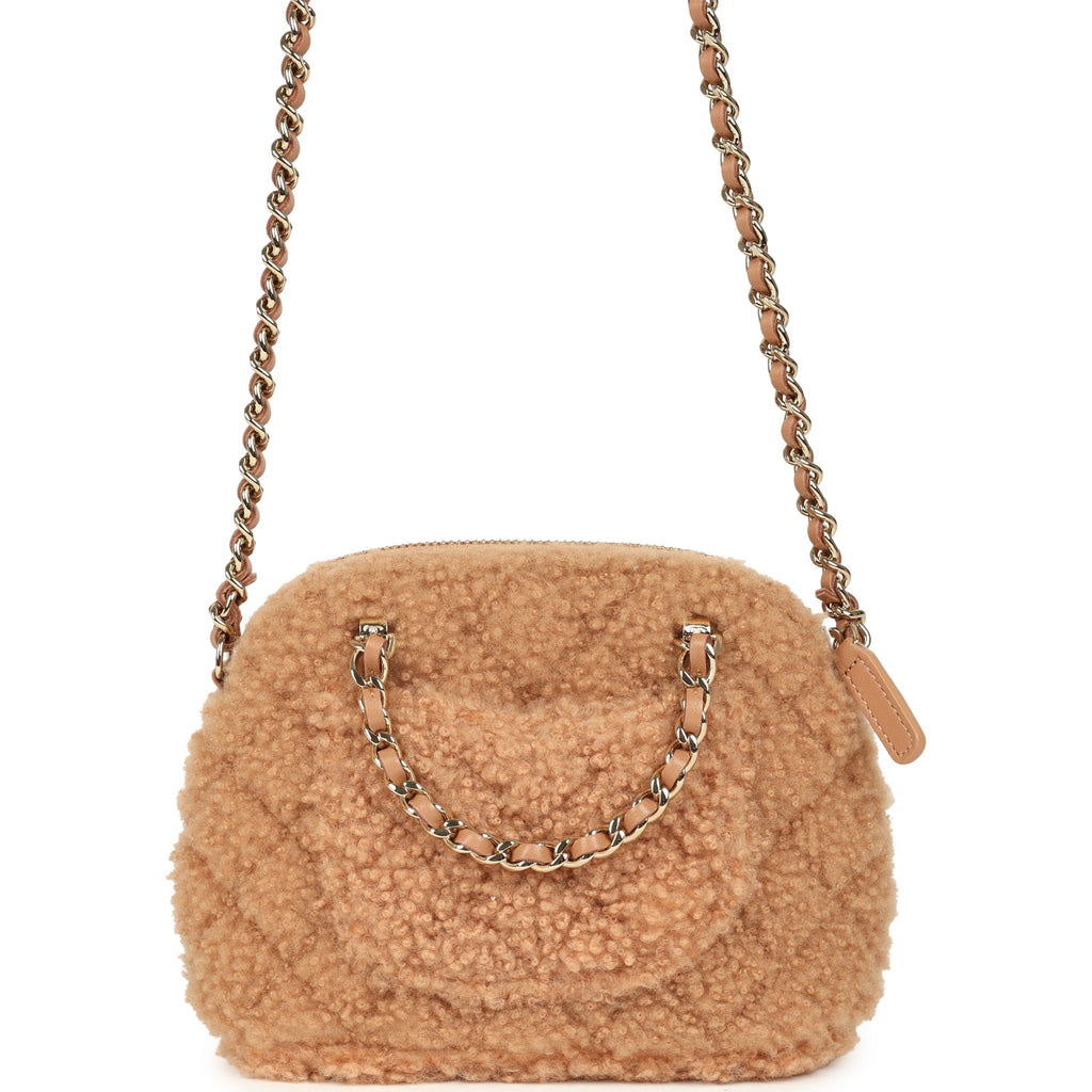 Chanel Small Coco Crossbody Bag Light Brown Shearling Light Gold Hardware