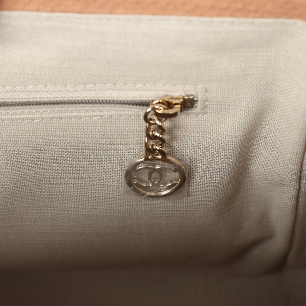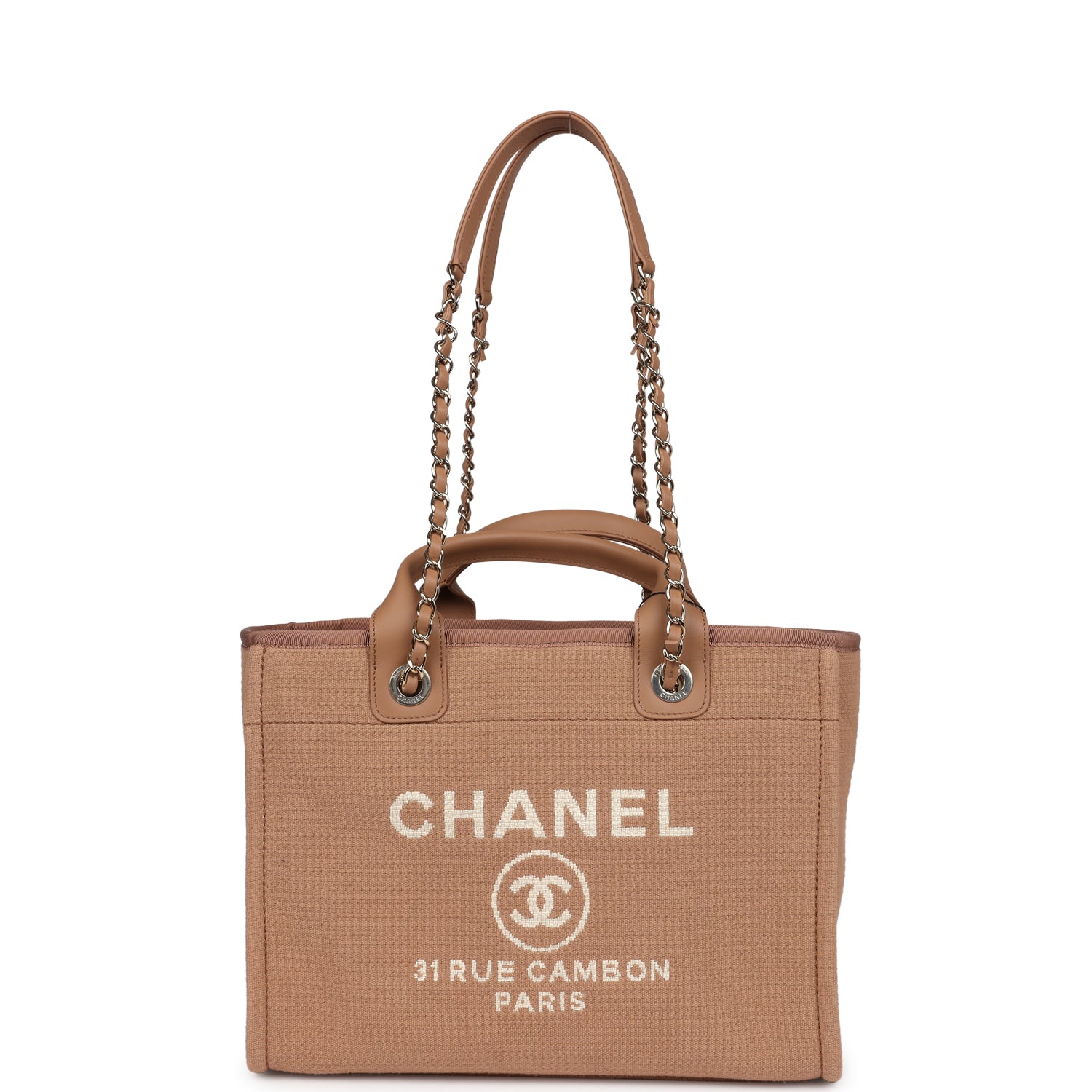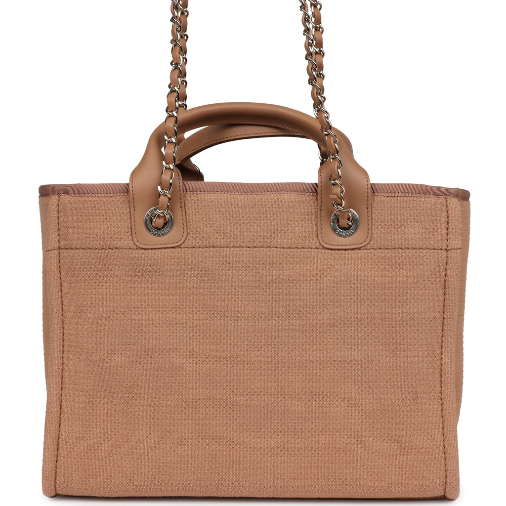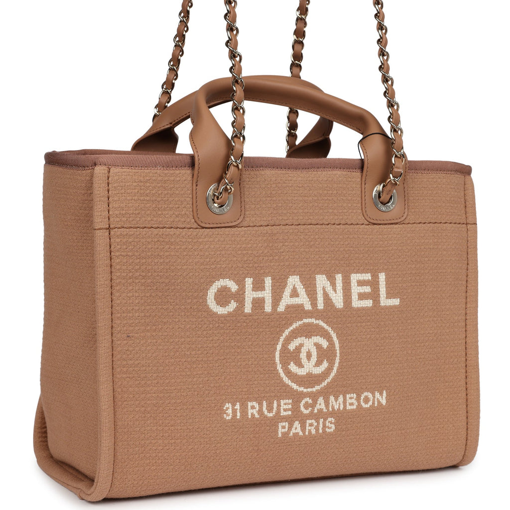 Chanel Small Deauville Shopping Tote Dark Beige Canvas Light Gold Hardware