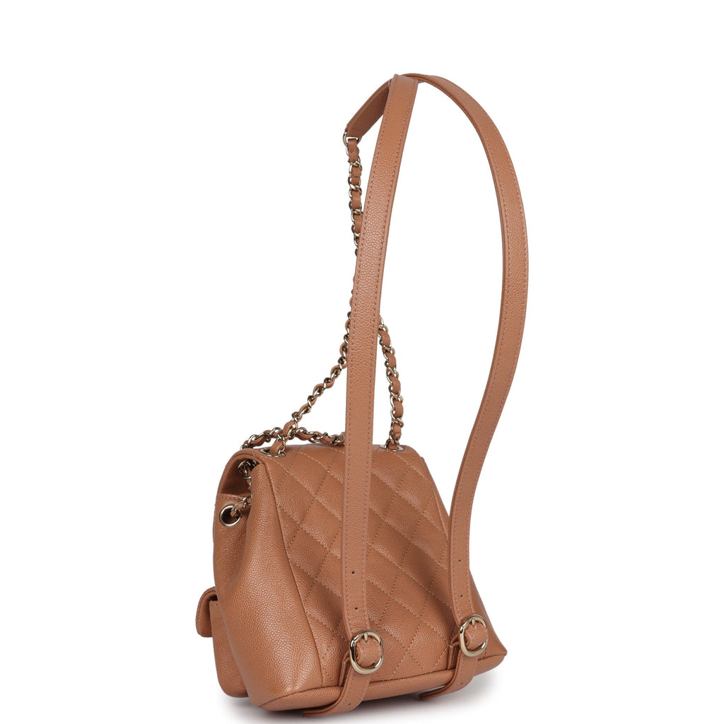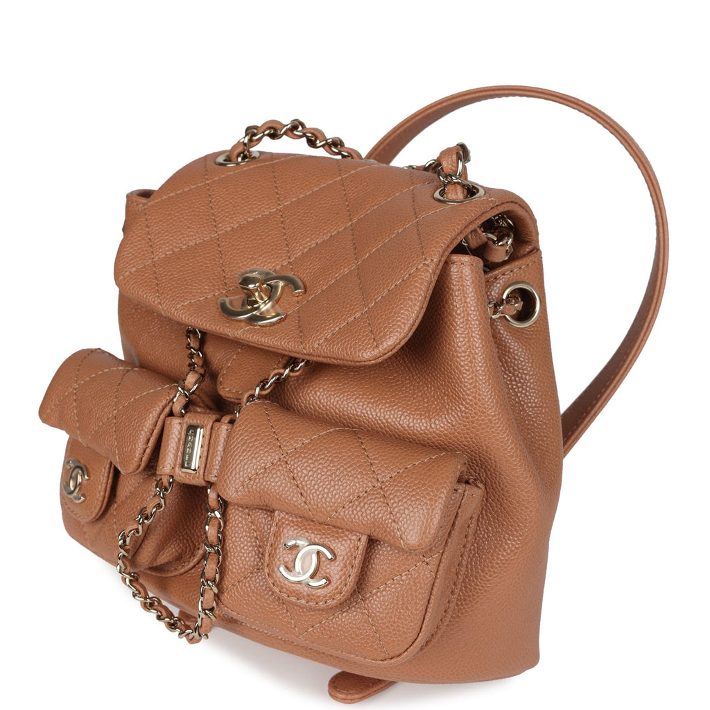Chanel Small Duma Backpack Dark Beige Caviar Light Gold Hardware