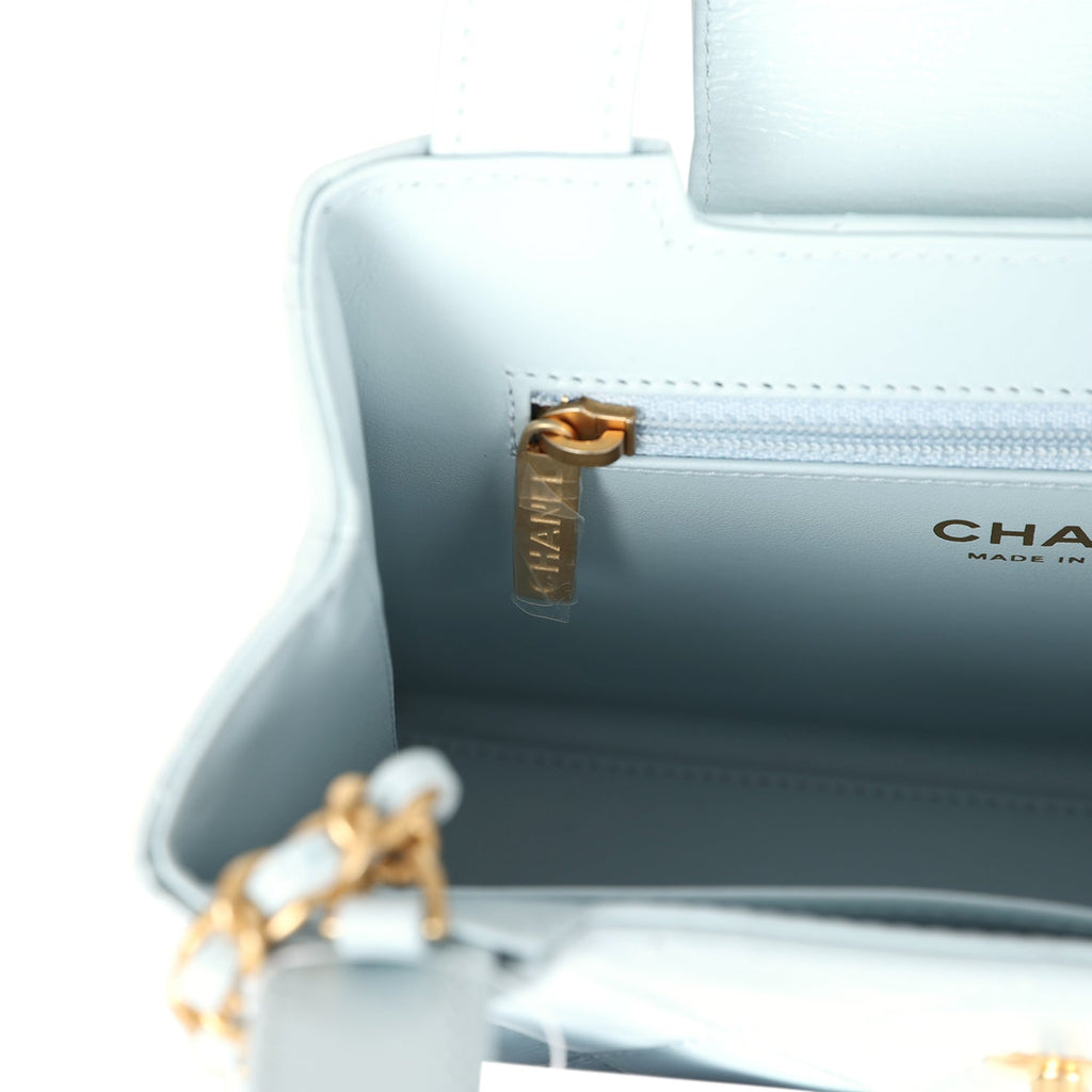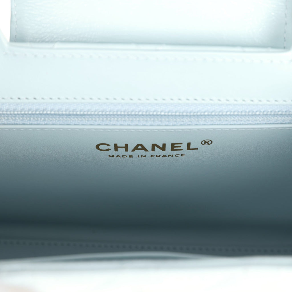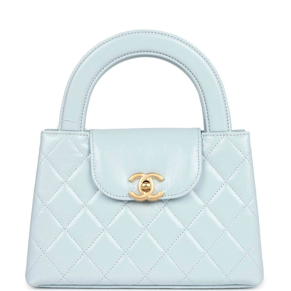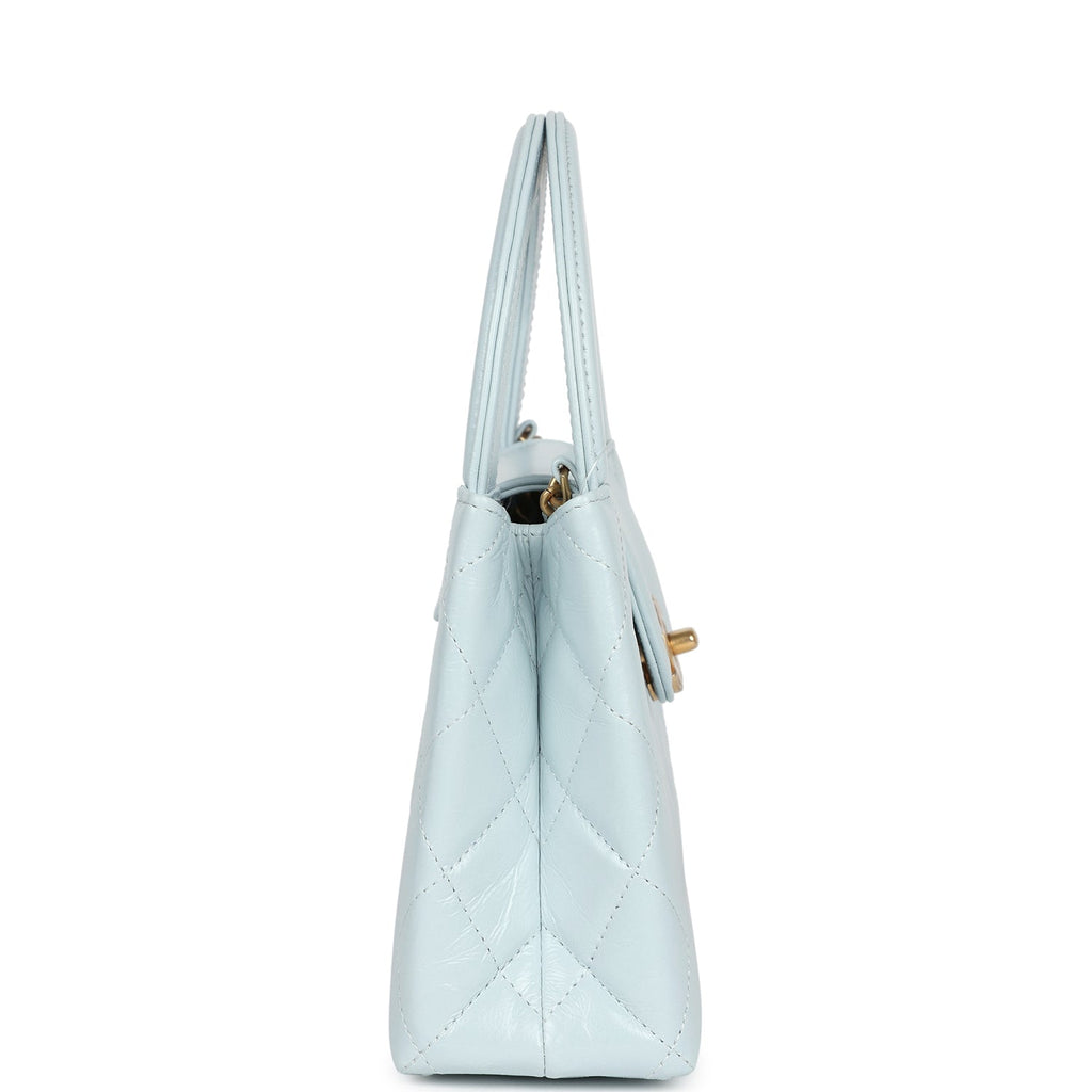 Chanel Small Kelly Shopper Light Blue Shiny Aged Calfskin Brushed Gold Hardware
