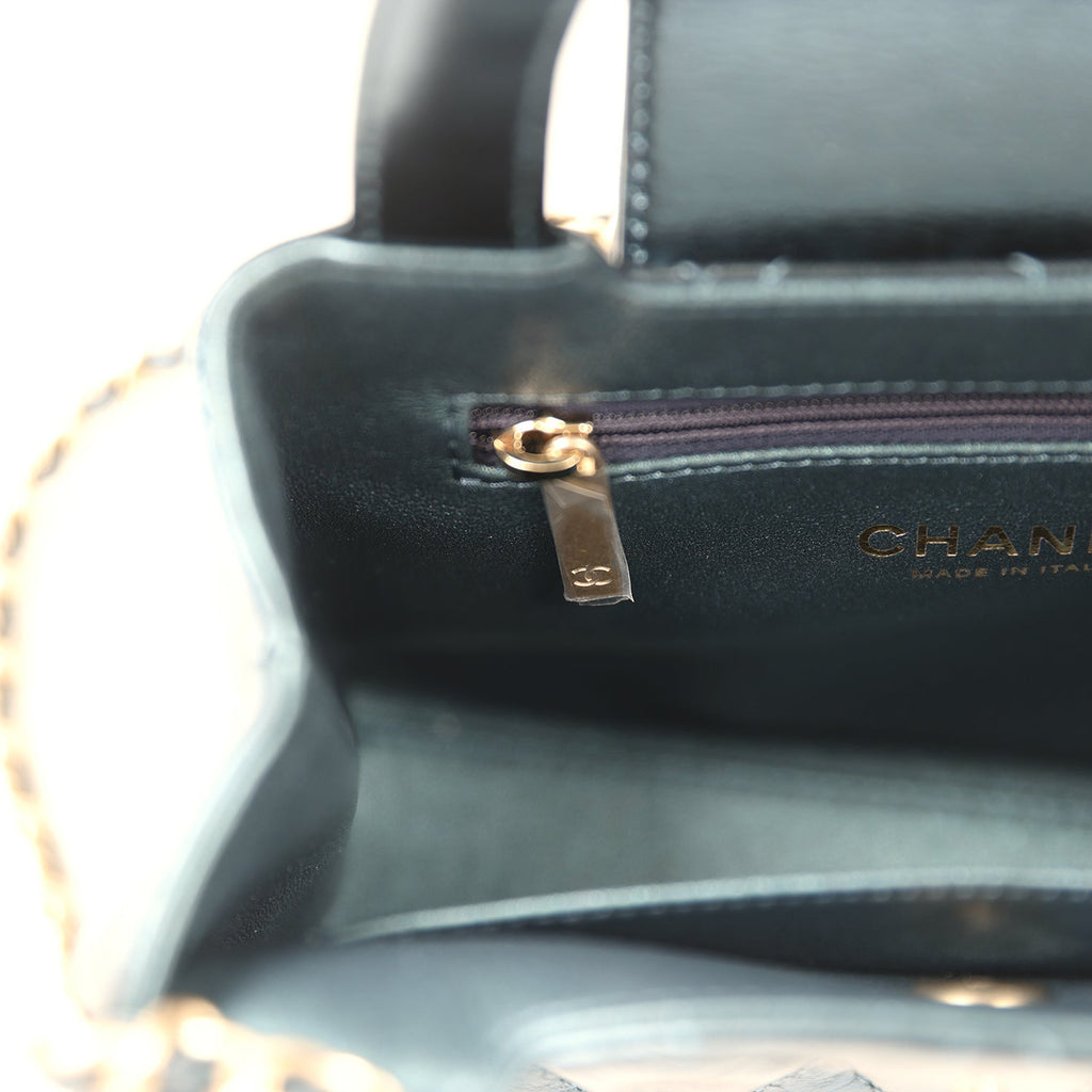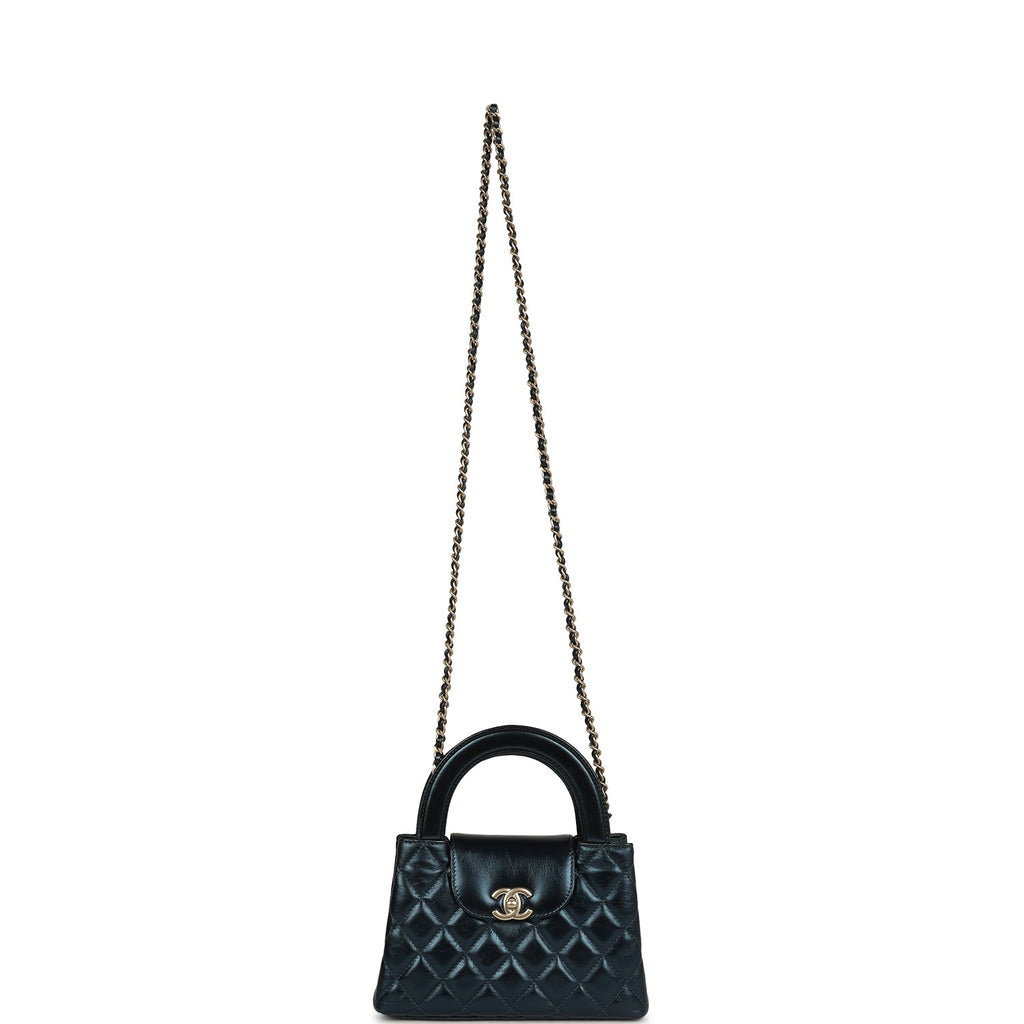 Chanel Small Kelly Shopper Metallic Blue Calfskin Brushed Gold Hardware