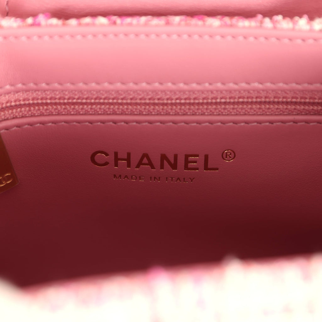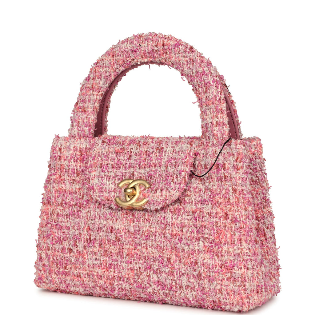 Chanel Small Kelly Shopper Pink Tweed Brushed Gold Hardware