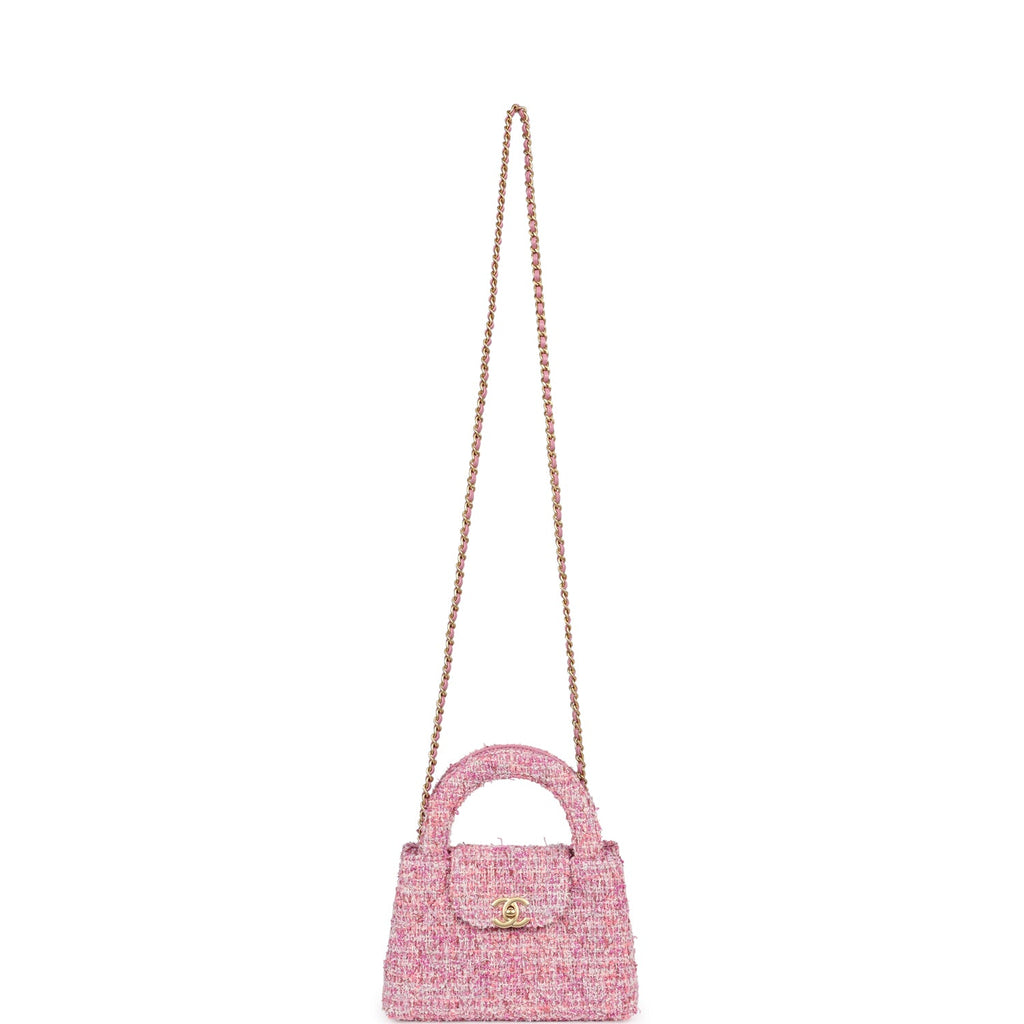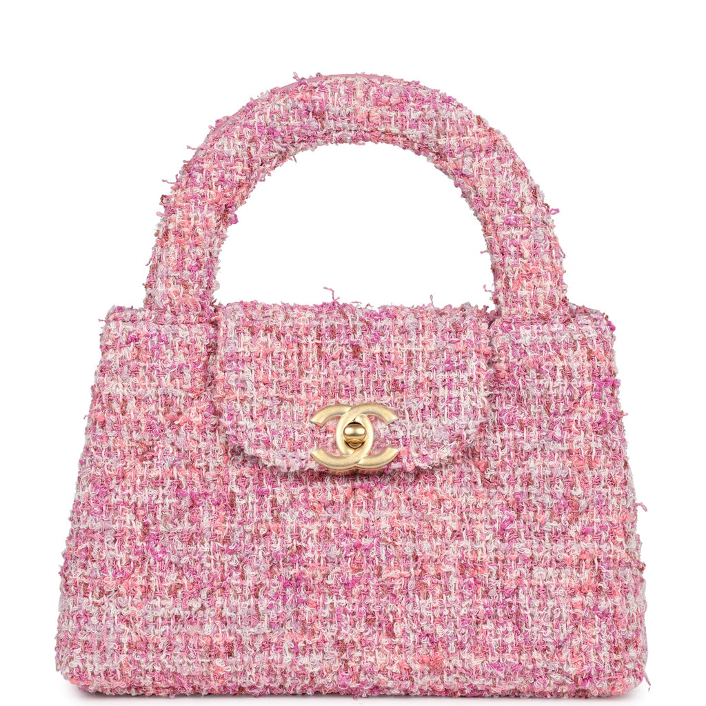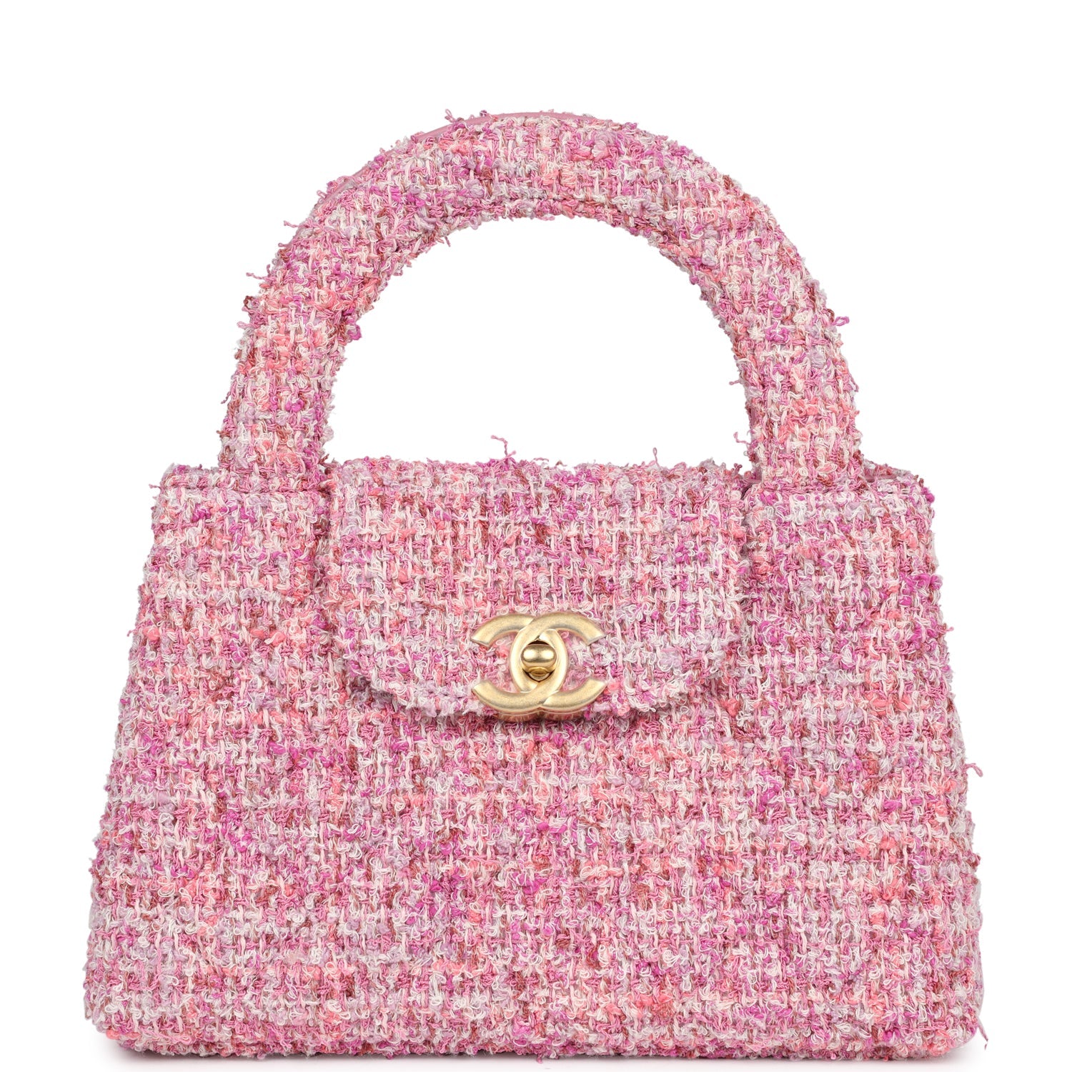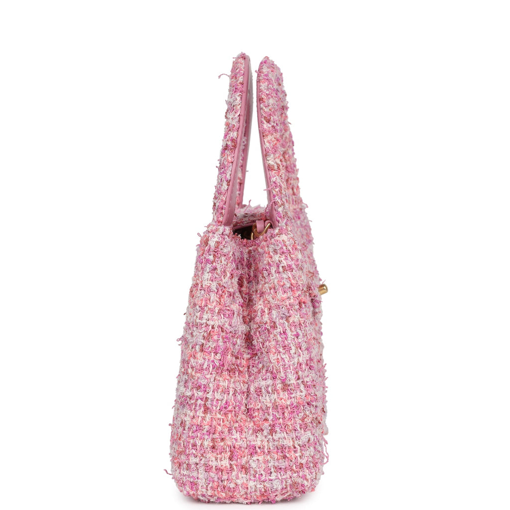 Chanel Small Kelly Shopper Pink Tweed Brushed Gold Hardware