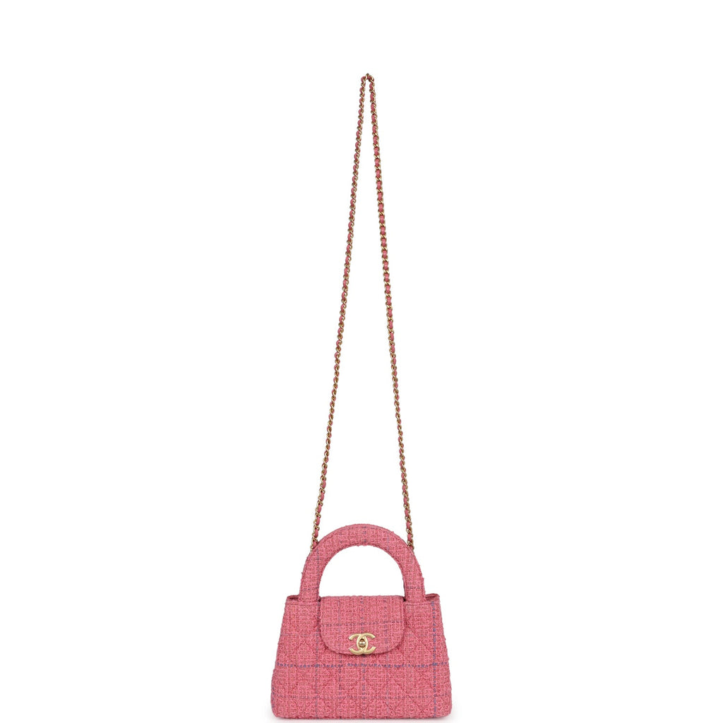 Chanel Small Kelly Shopper Pink Tweed Brushed Gold Hardware
