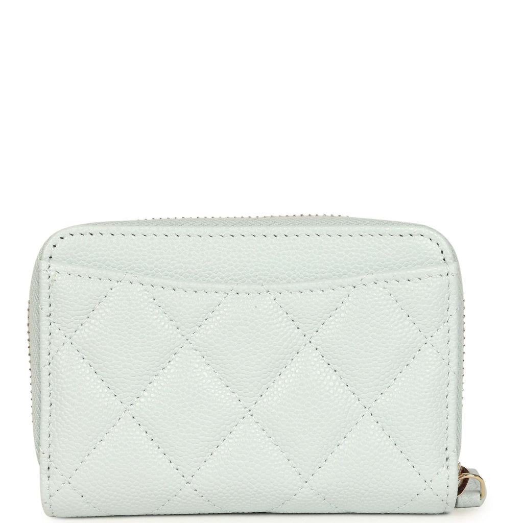 Chanel Classic Zipped Coin Purse Wallet Light Blue Caviar Light Gold Hardware