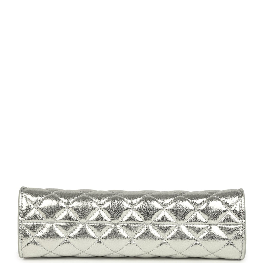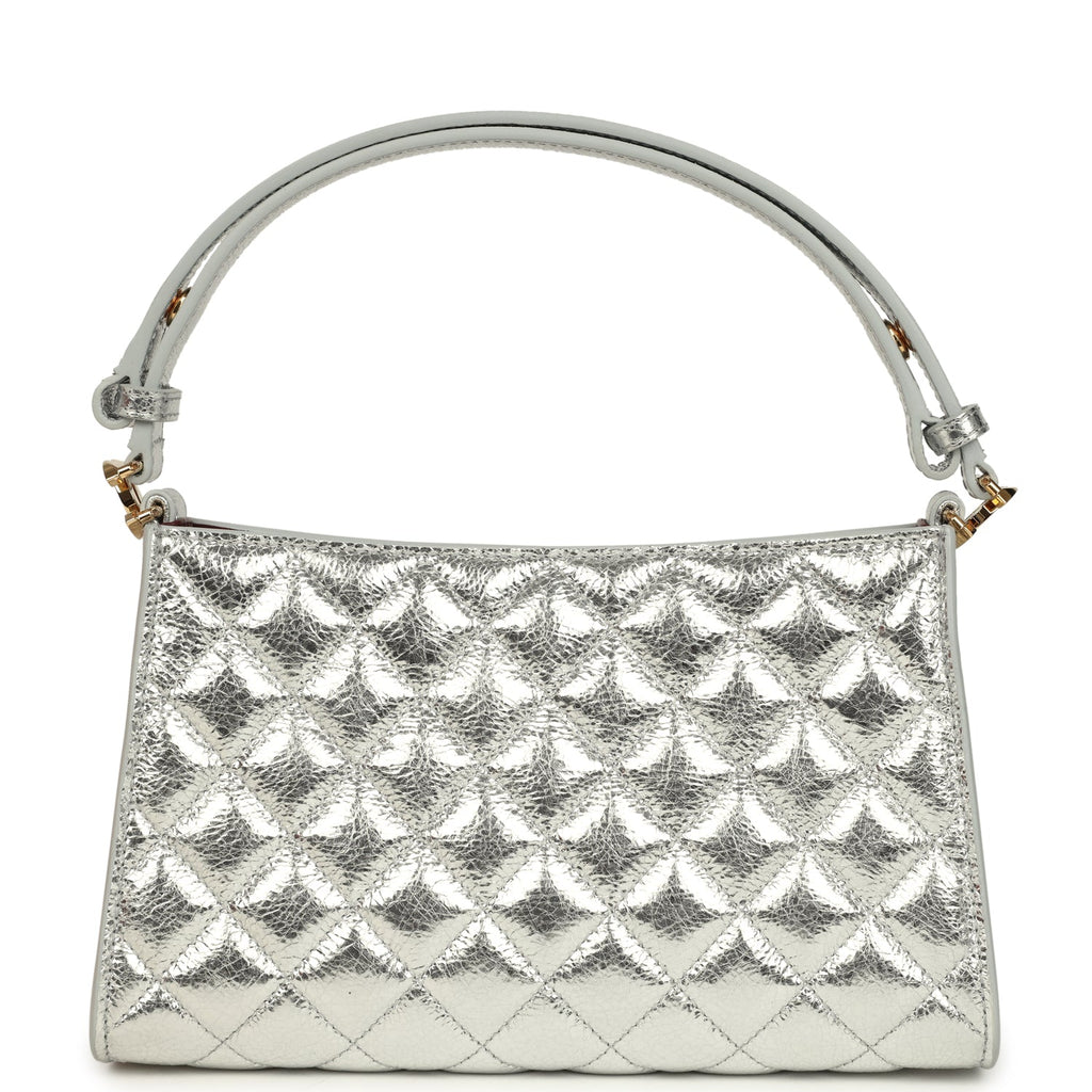 Chanel Small Quilted CC Shoulder Bag Metallic Silver Aged Calfskin Gold Hardware