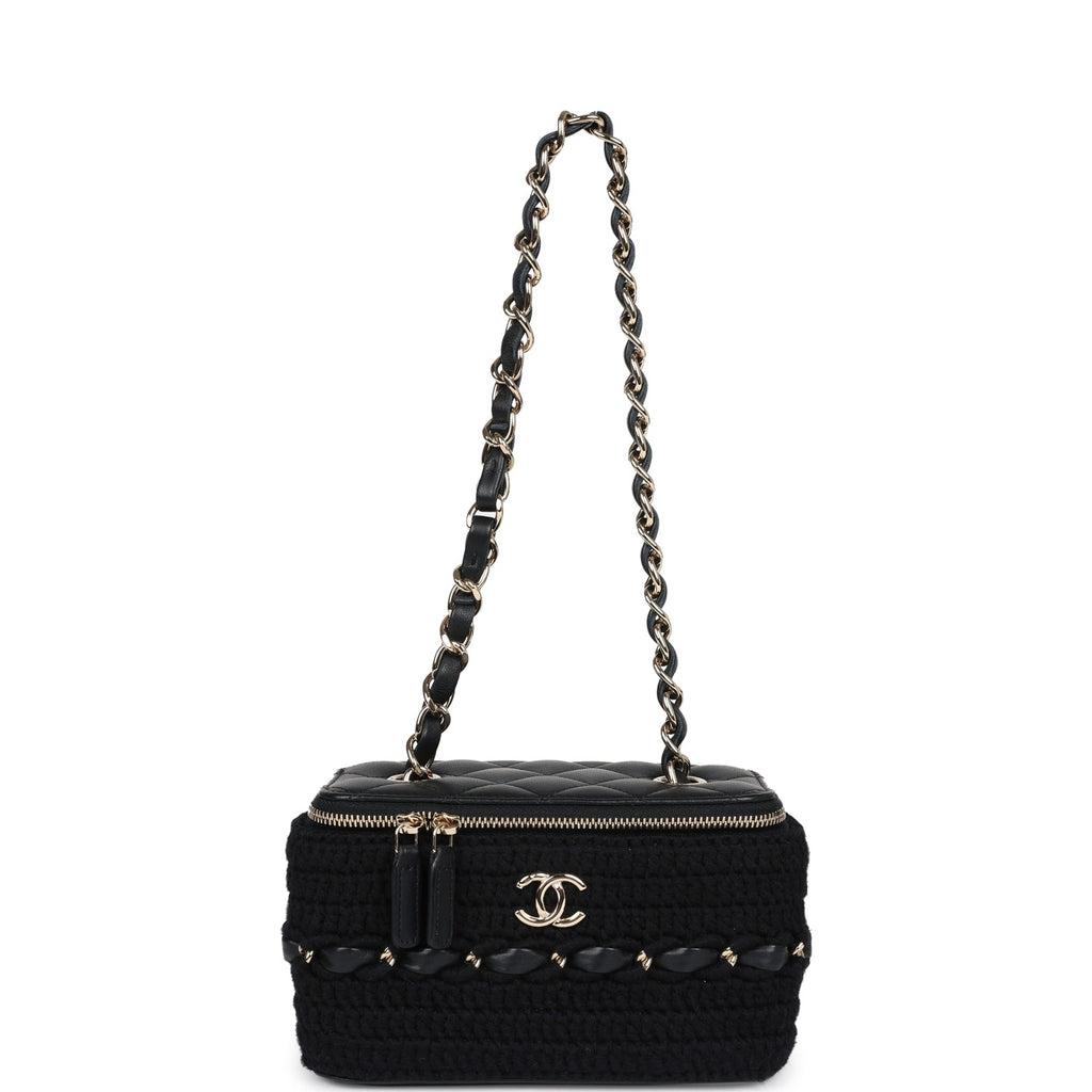 Chanel Small Vanity Case Black Crochet and Lambskin Light Gold Hardware