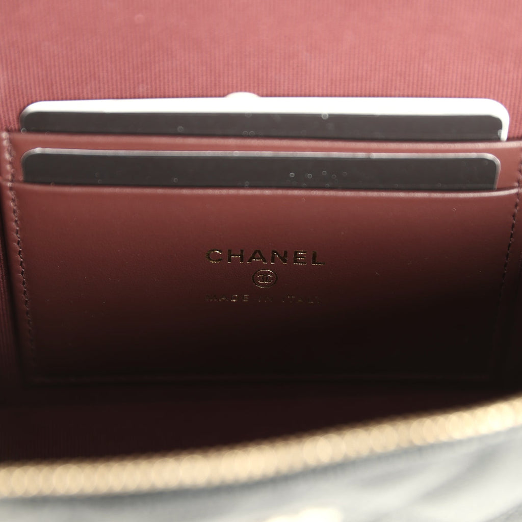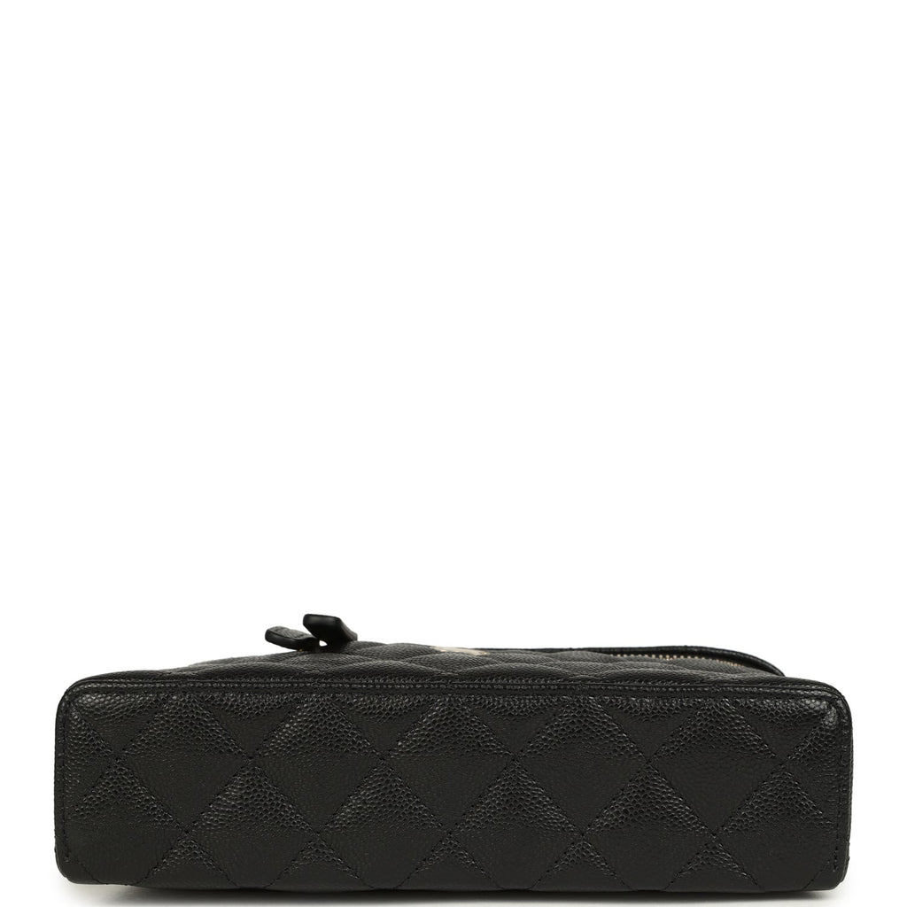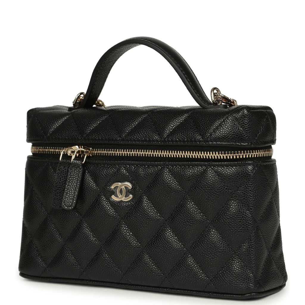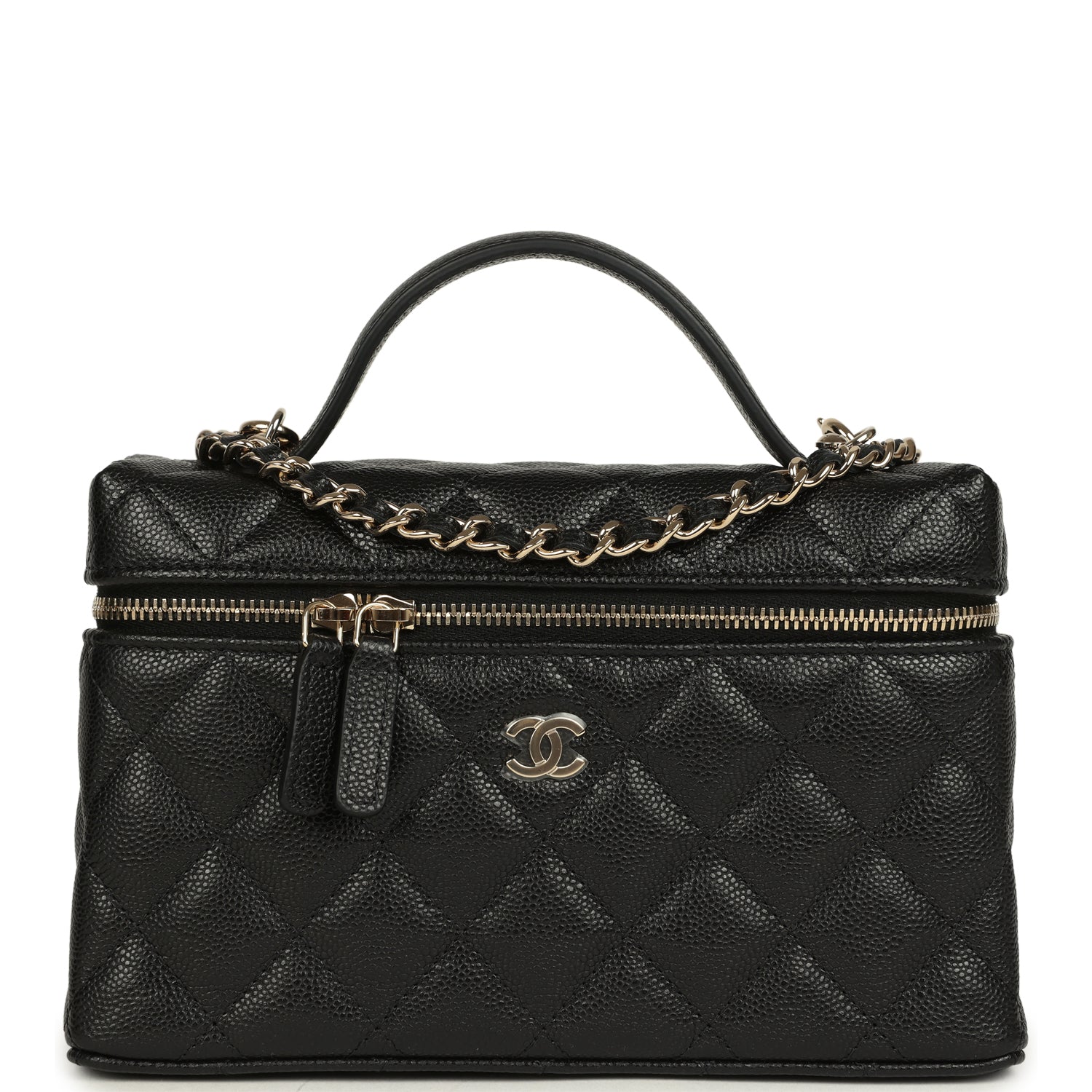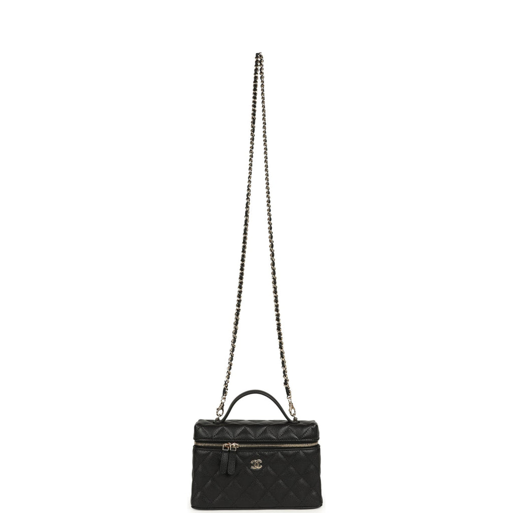 Chanel Top Handle Long Vanity Case with Chain Black Caviar Light Gold Hardware