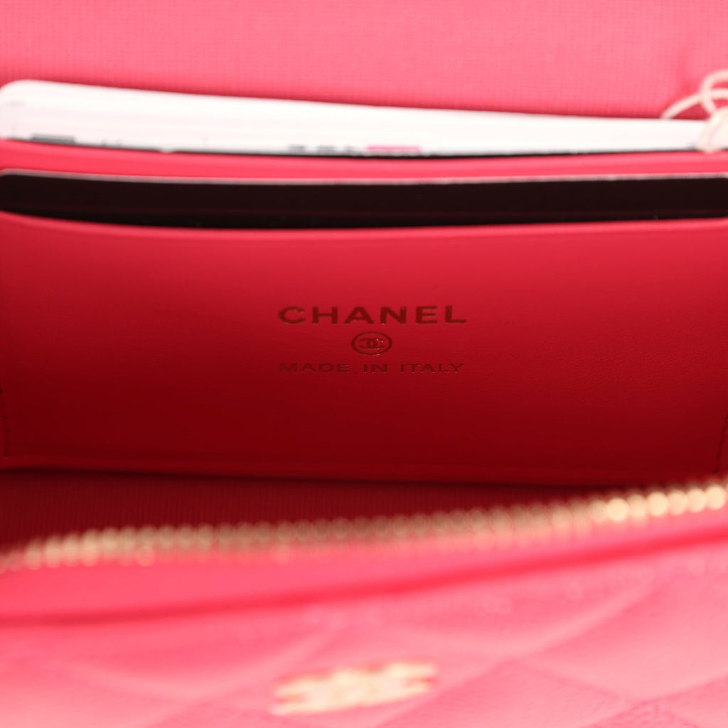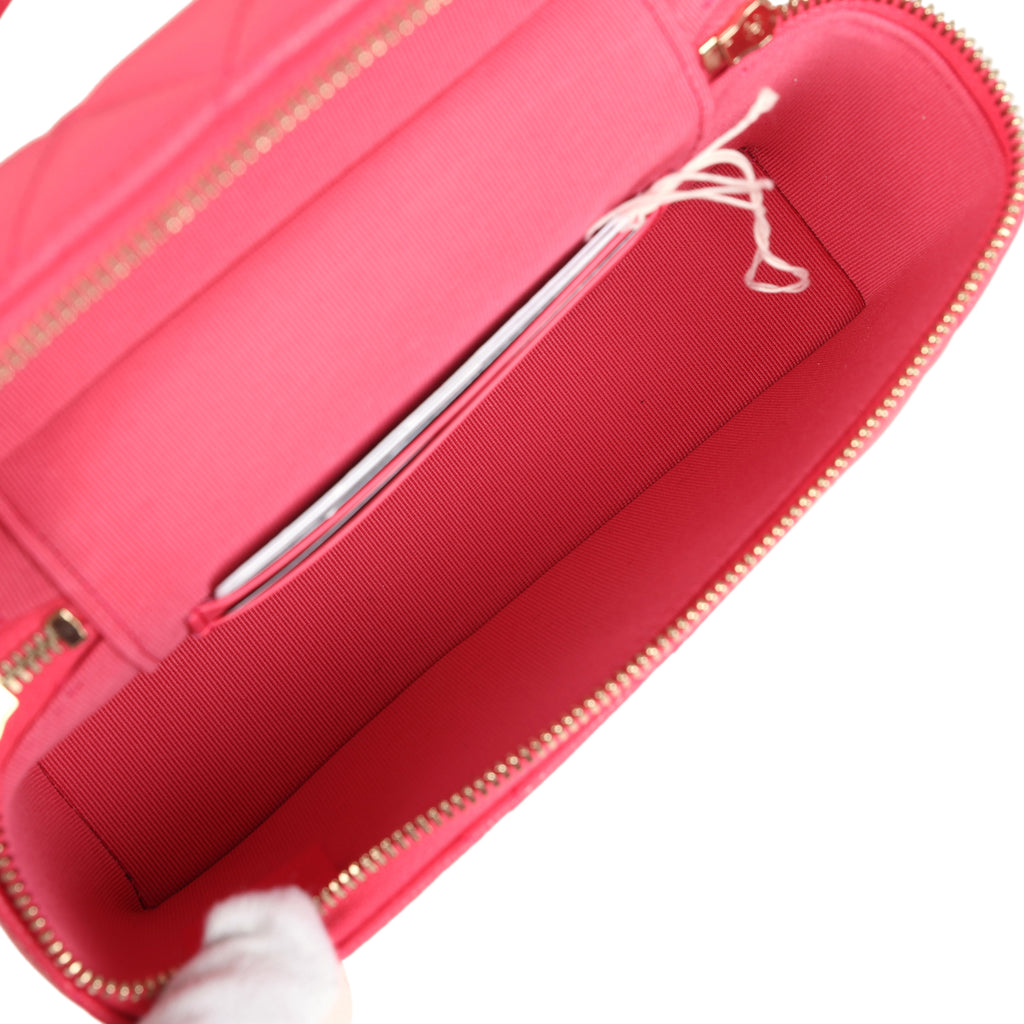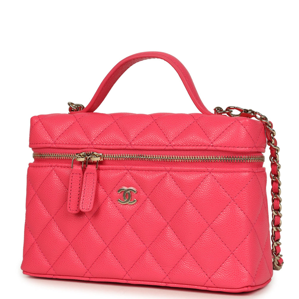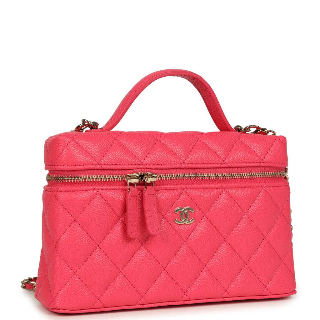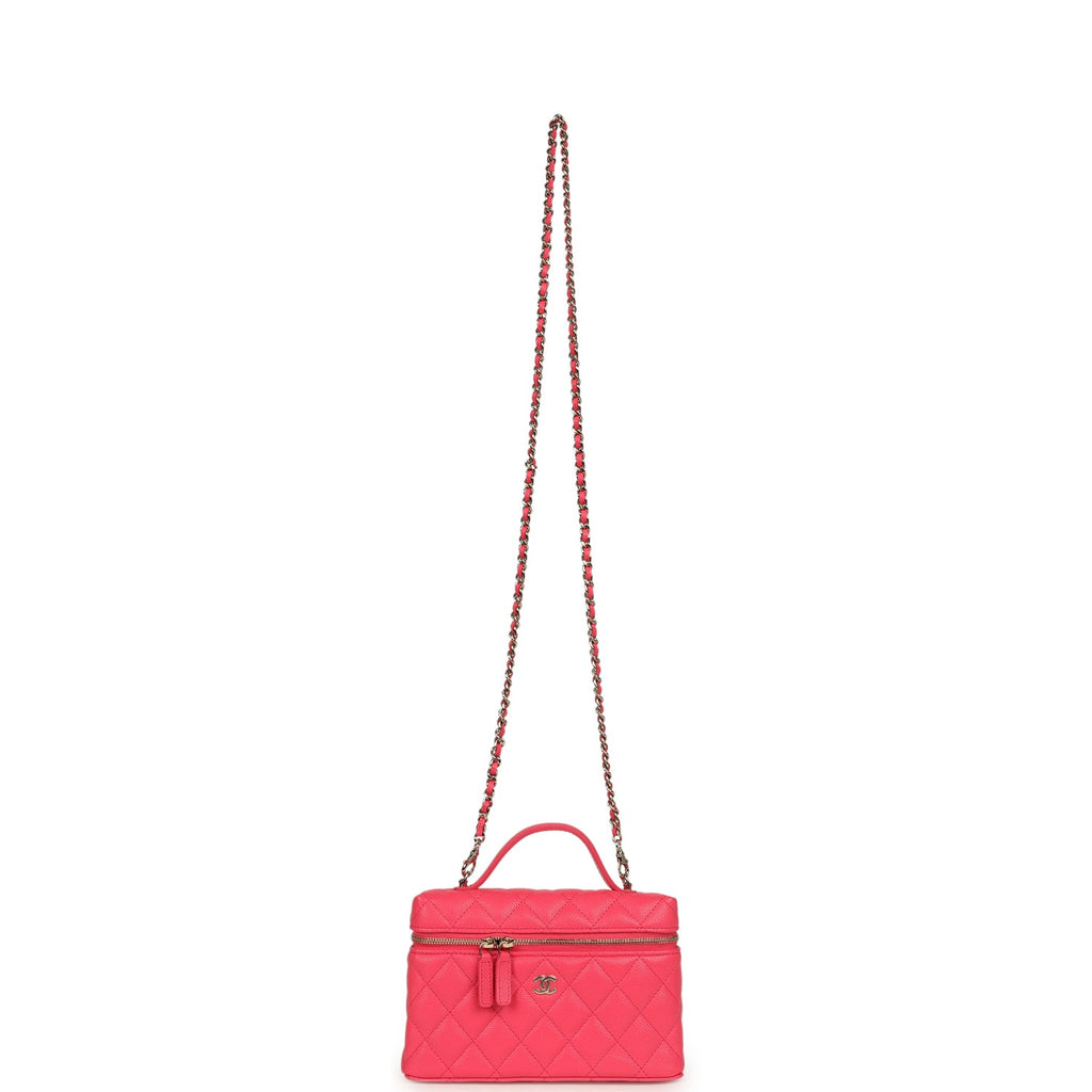 Chanel Top Handle Long Vanity Case with Chain Fuchsia Shiny Caviar Light Gold Hardware