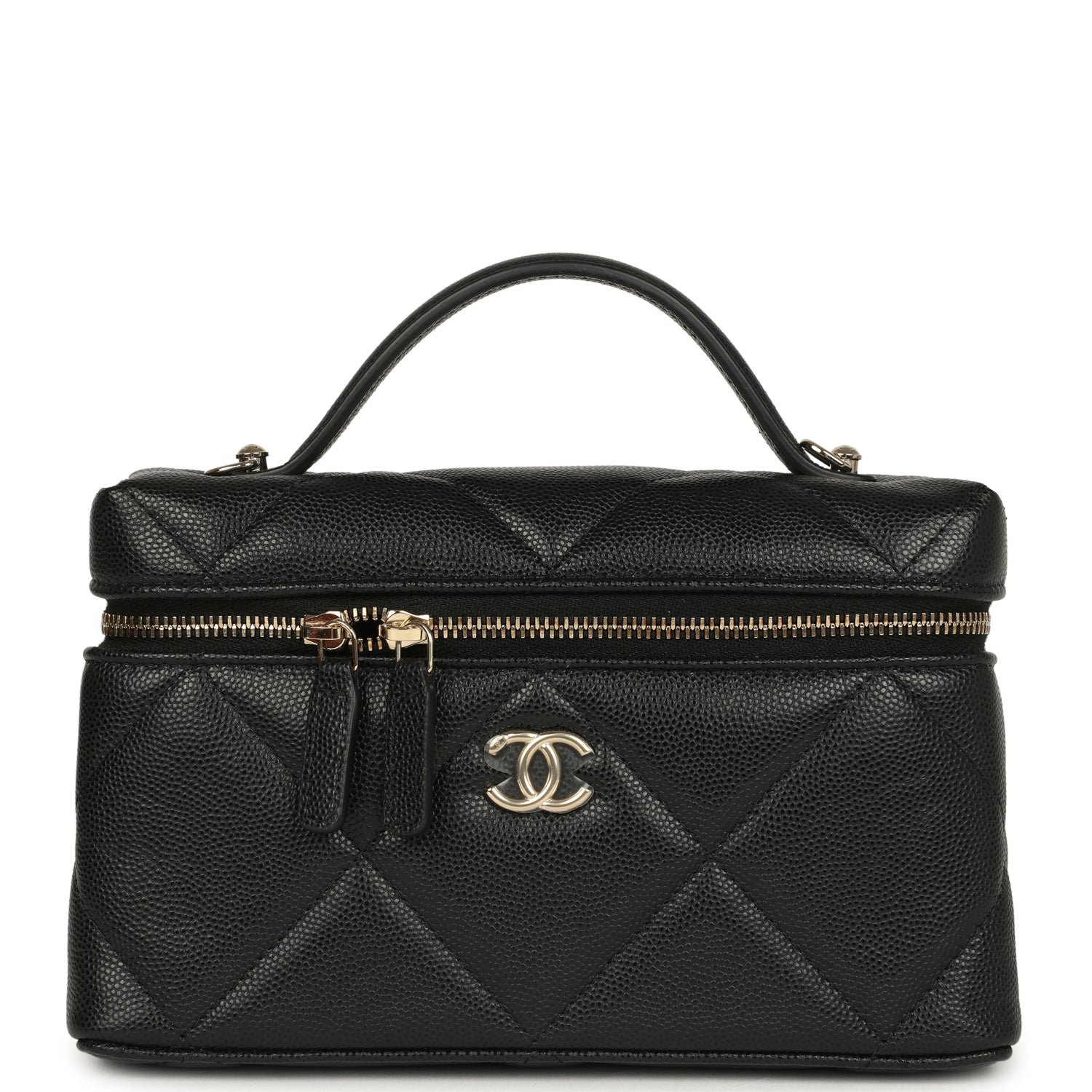 Chanel Top Handle Slim Vanity Case with Chain Black Shiny Caviar Light Gold Hardware