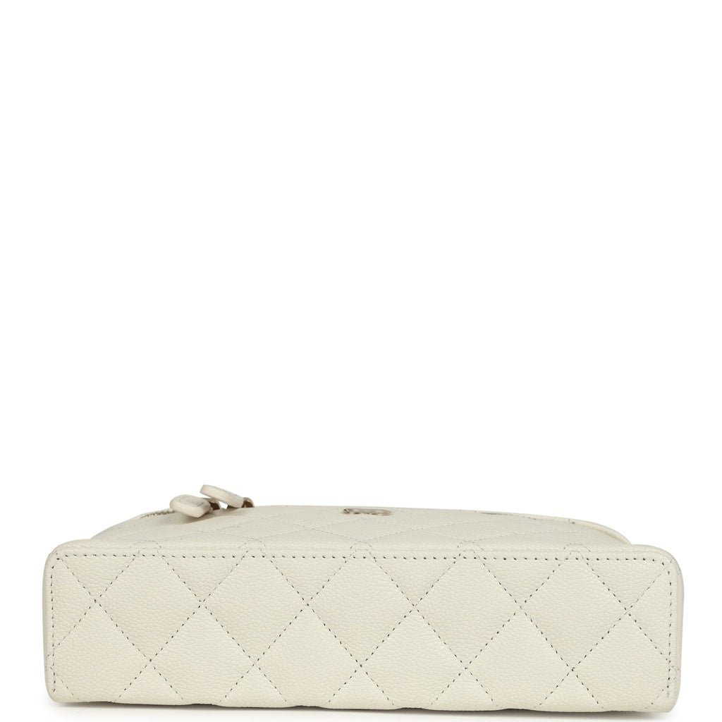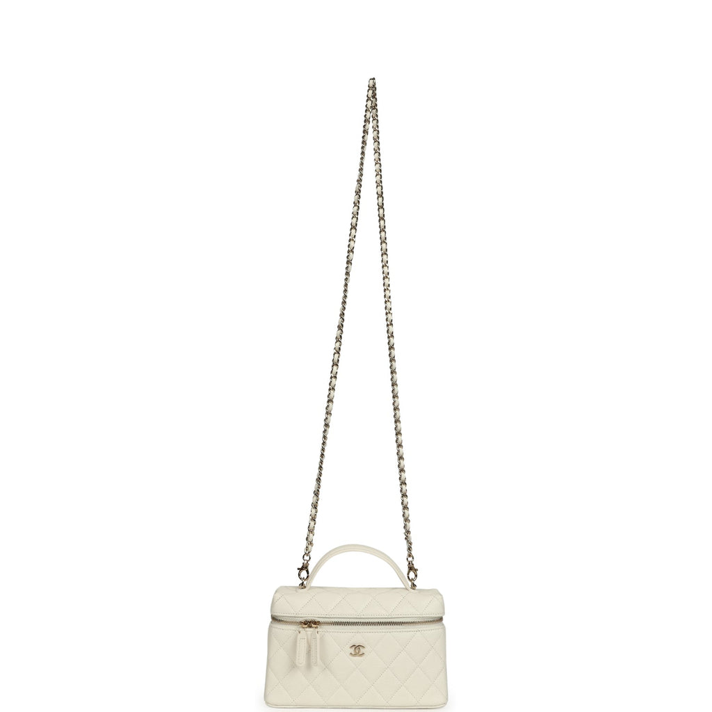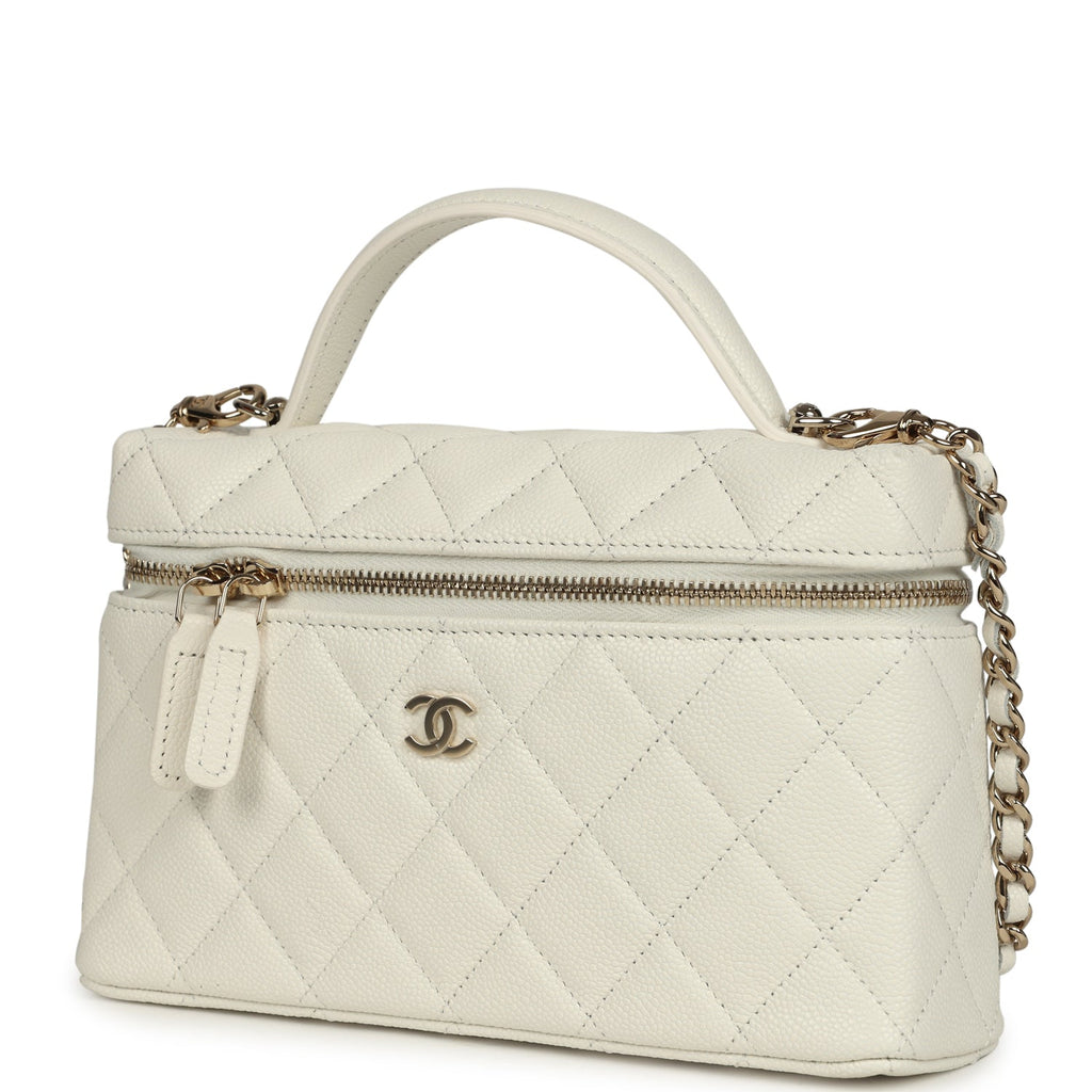 Chanel Trendy Top Handle Long Vanity Case with Chain White Caviar Light Gold Hardware