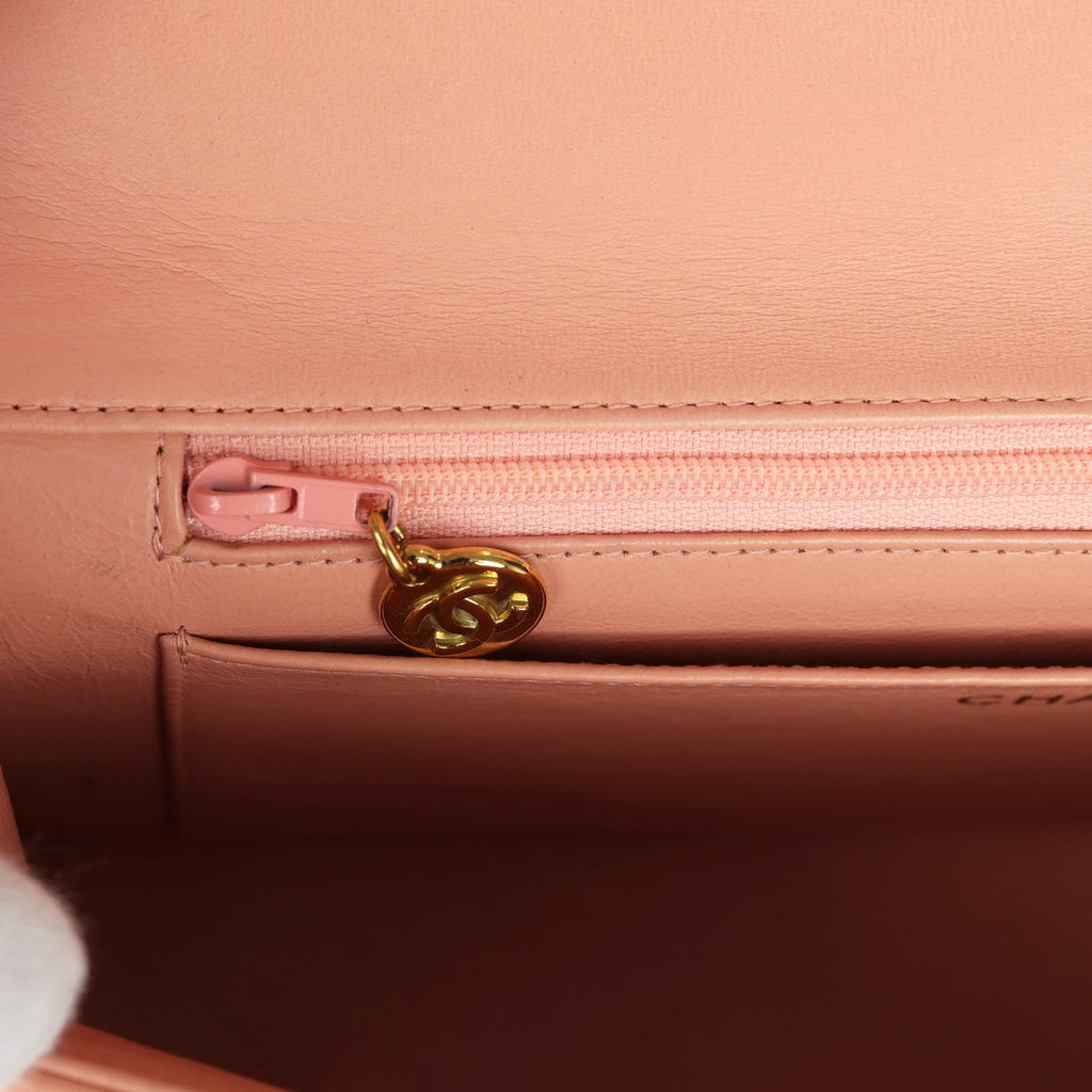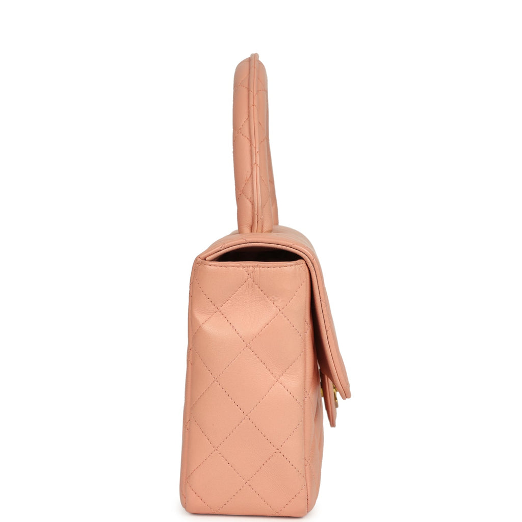 Vintage Chanel Kelly Parent and Child Flap Bag Set Pink Lambskin Gold Hardware